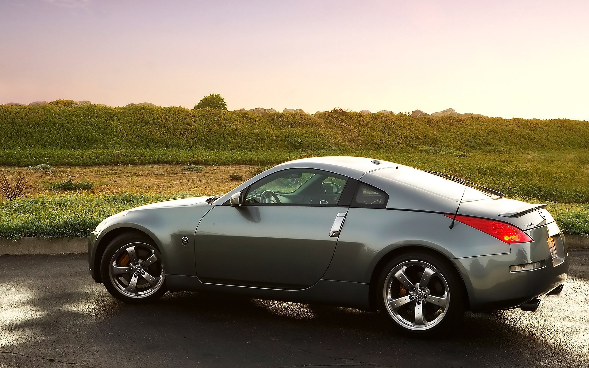 Nissan on the background of the landscape at sunsetNissan on the background of the landscape at sunset