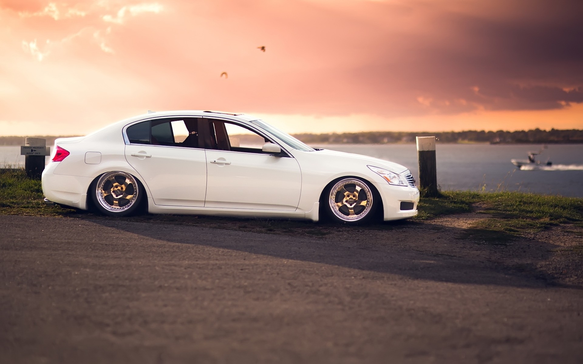White infiniti car and water