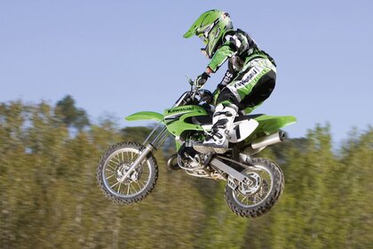 A man on a green motorcycle took off