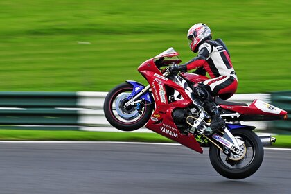Riding on the back wheel of a motorcycle