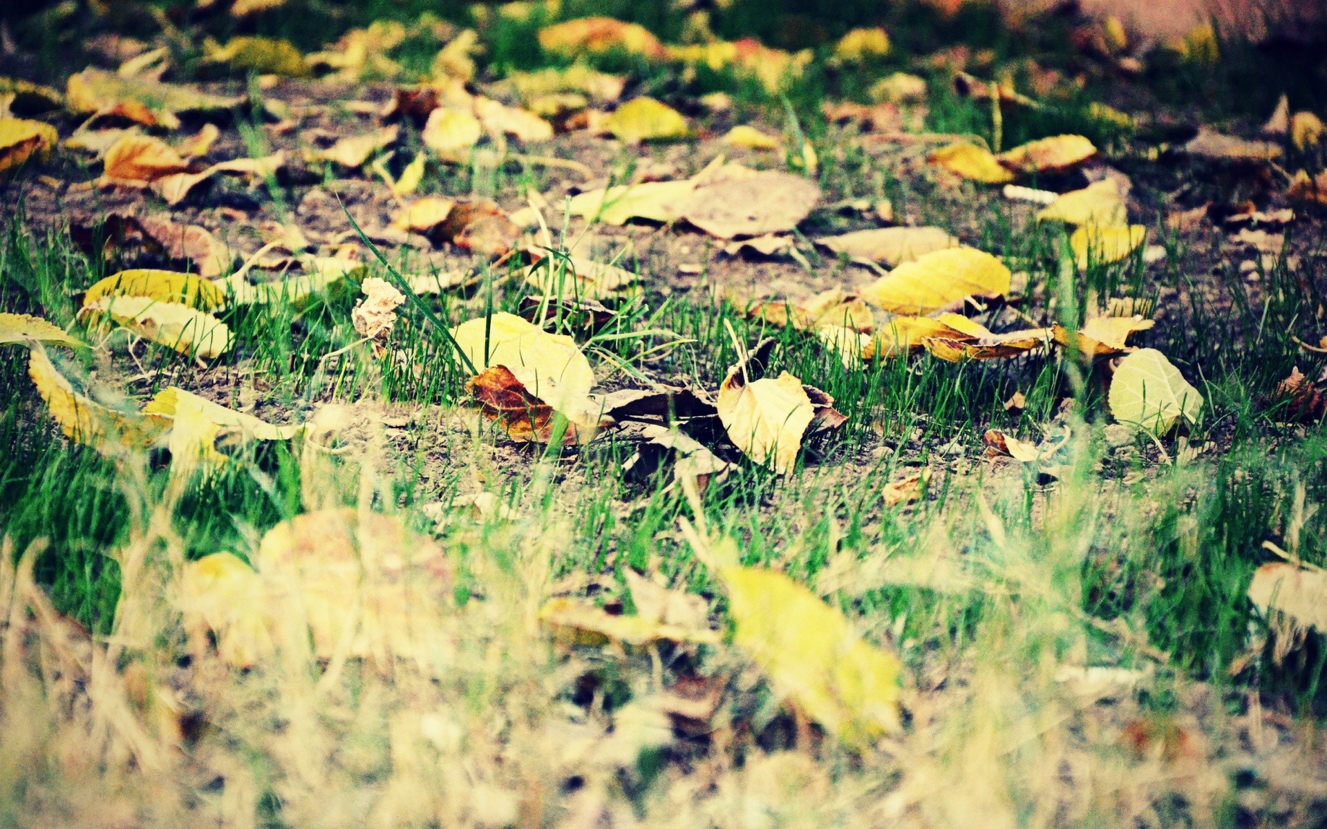 Fallen autumn leaves shine