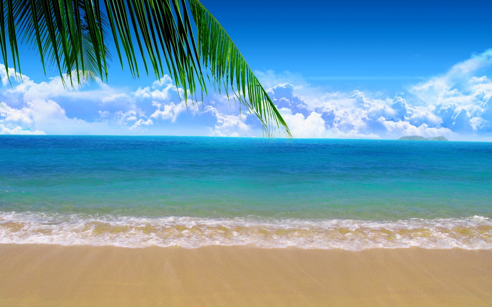 There is a palm tree on the beach by the ocean