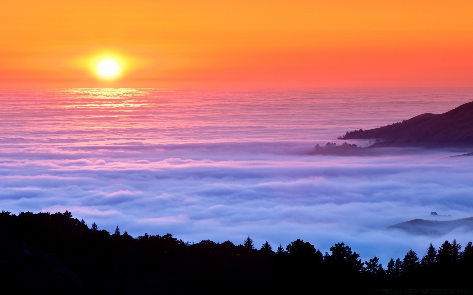 Beautiful sunrise in the open sea