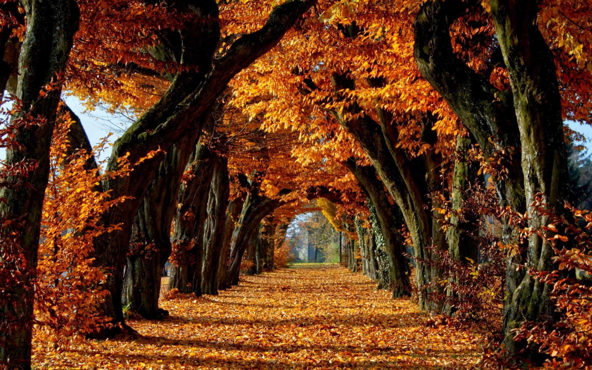 Autumn shrubs are a solid carpet of orange and red and green