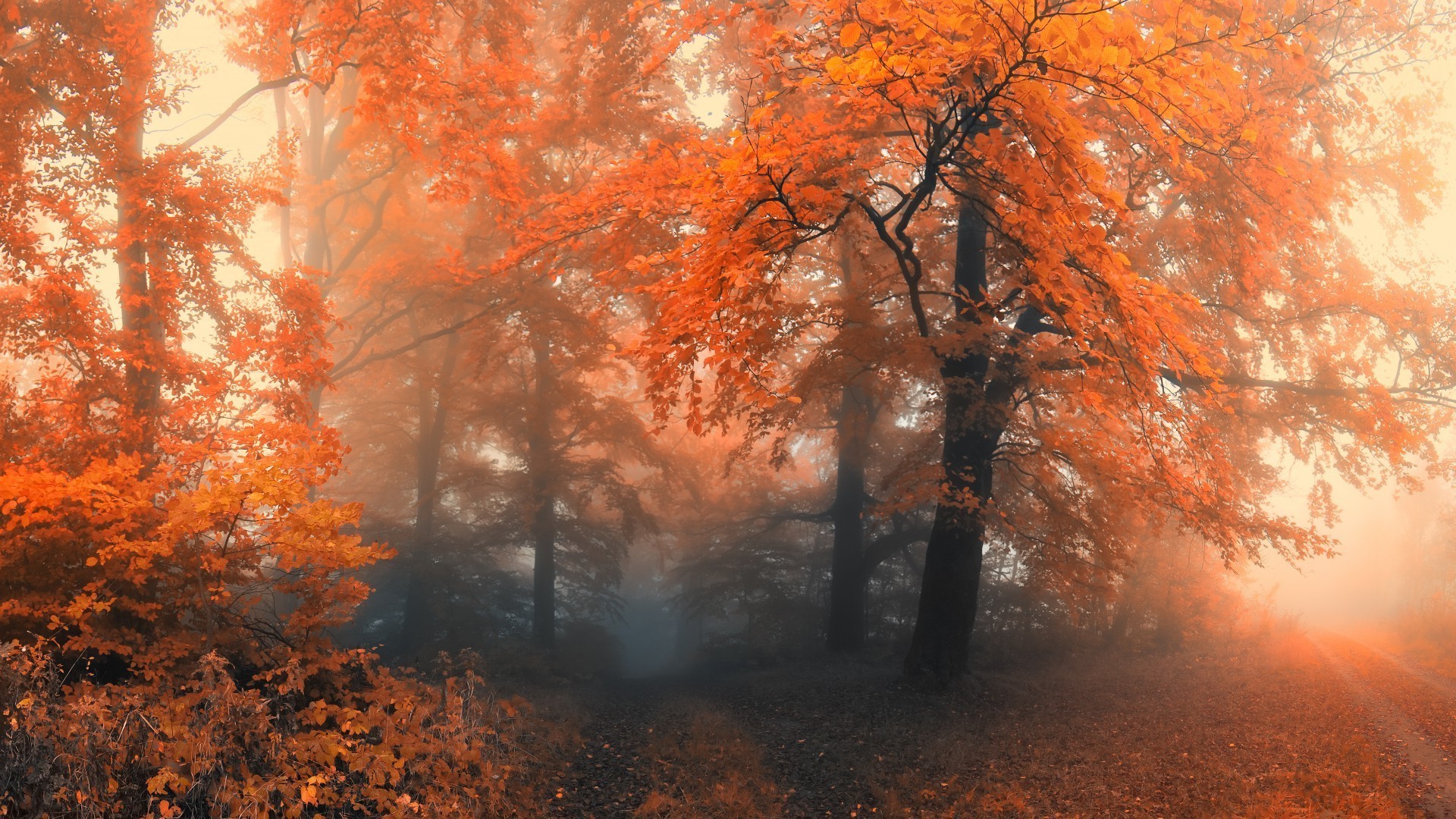 Autumn forest. Orange leaves