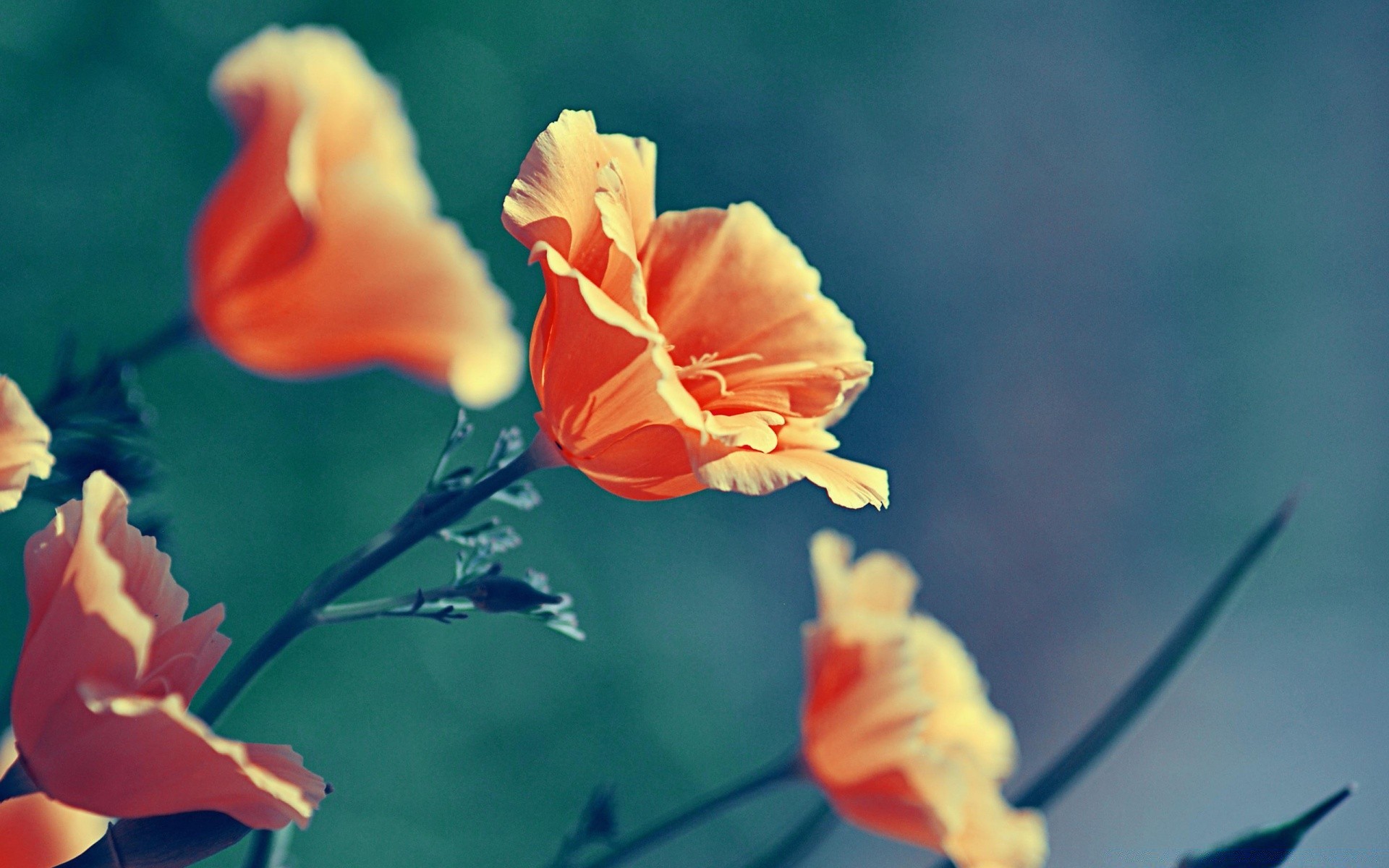 The flowers of poppies look into the sky