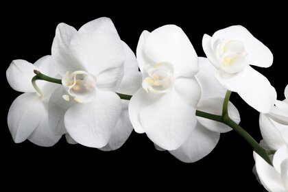 White orchid flowers on a black background