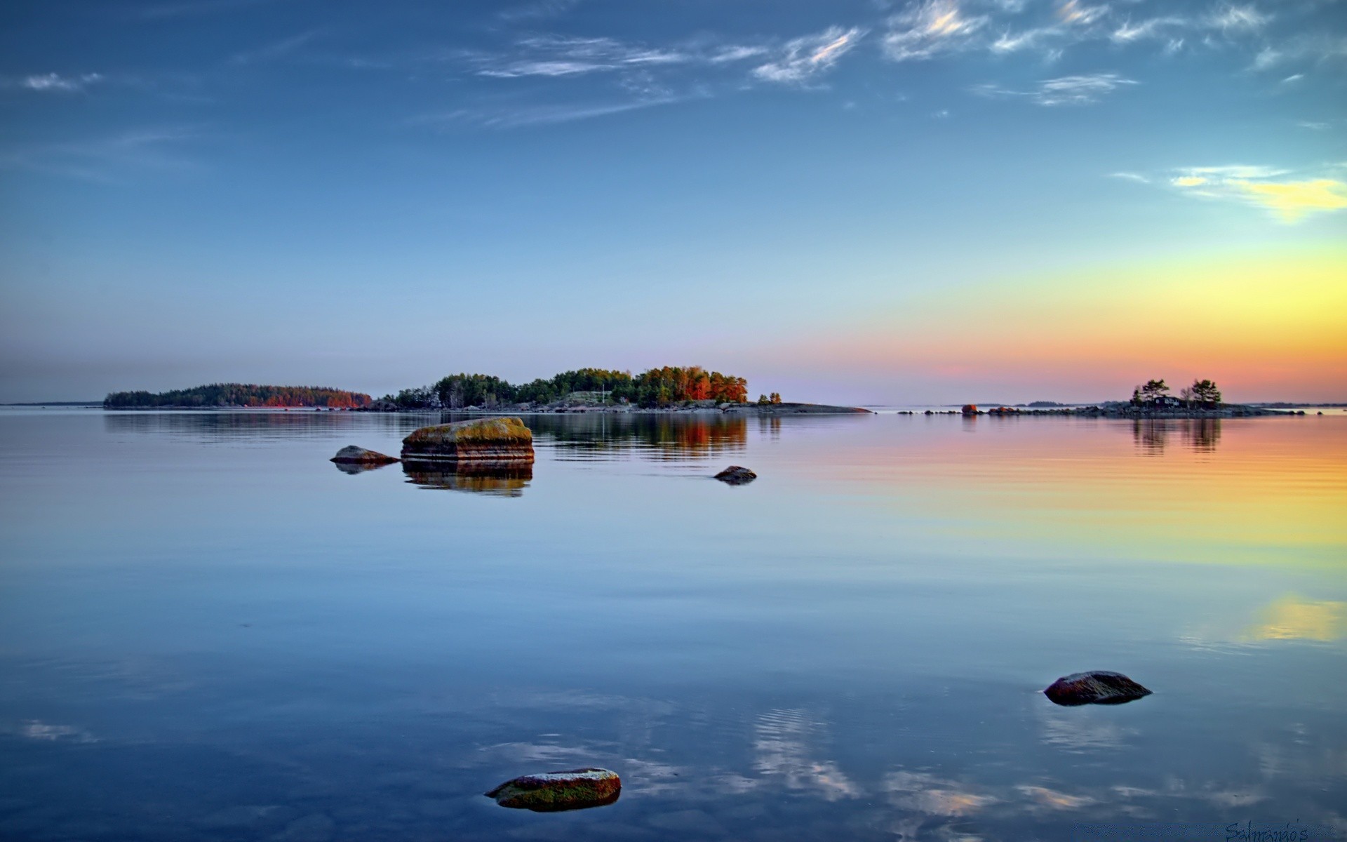 Sunset and sunrise on the beach of the sea and ocean in the water