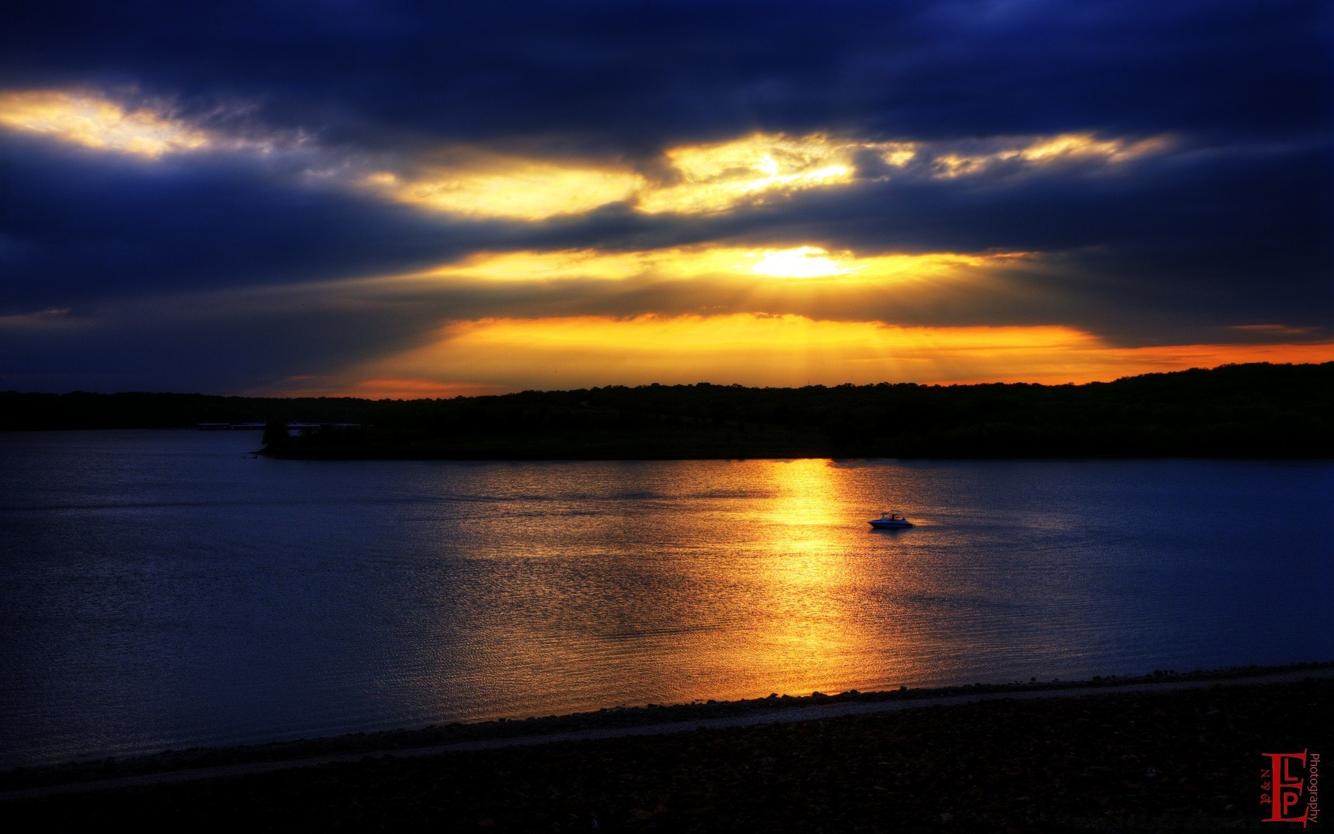 Sunset in the evening on the ocean