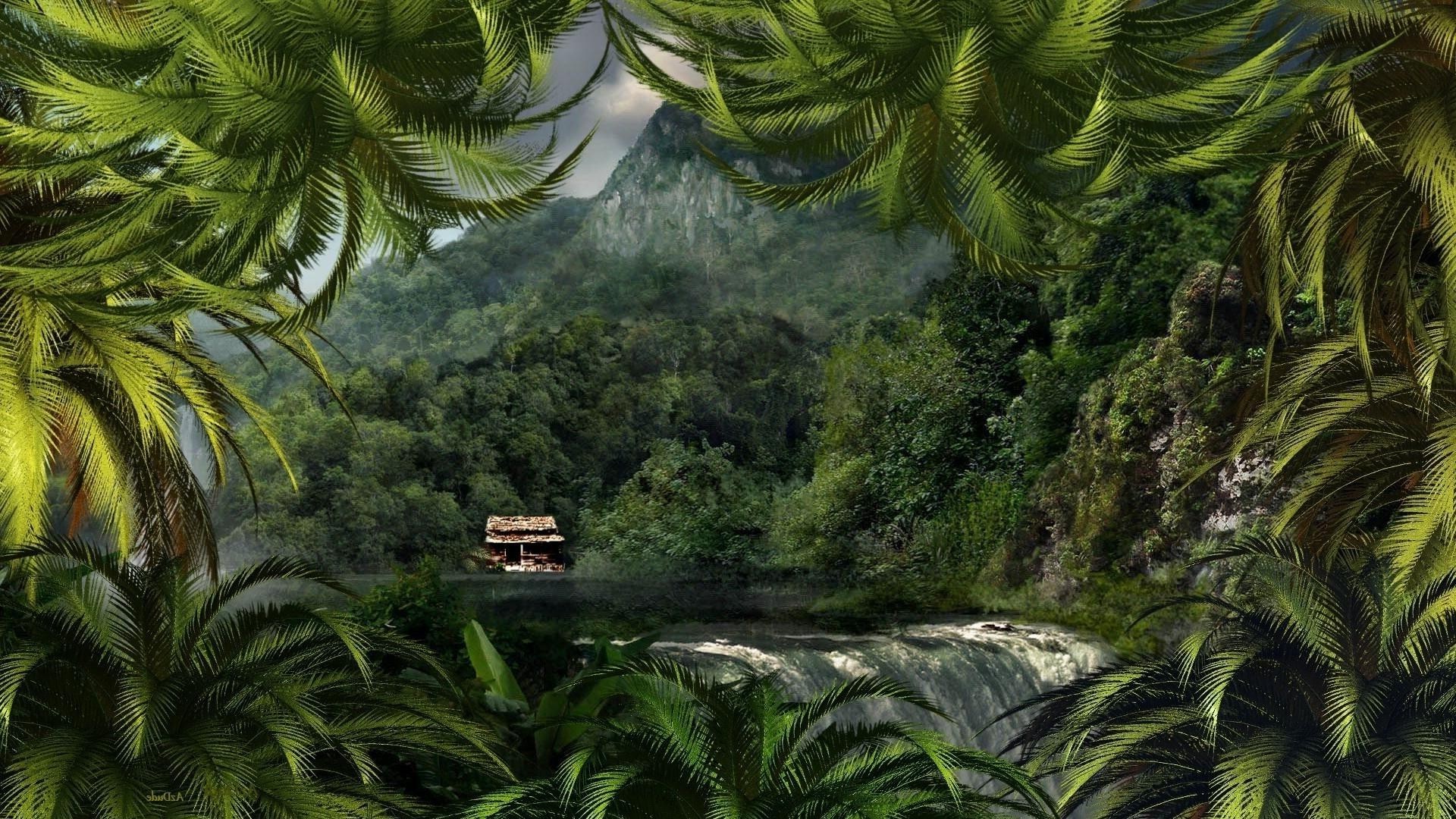 Waterfall house in the rainforest