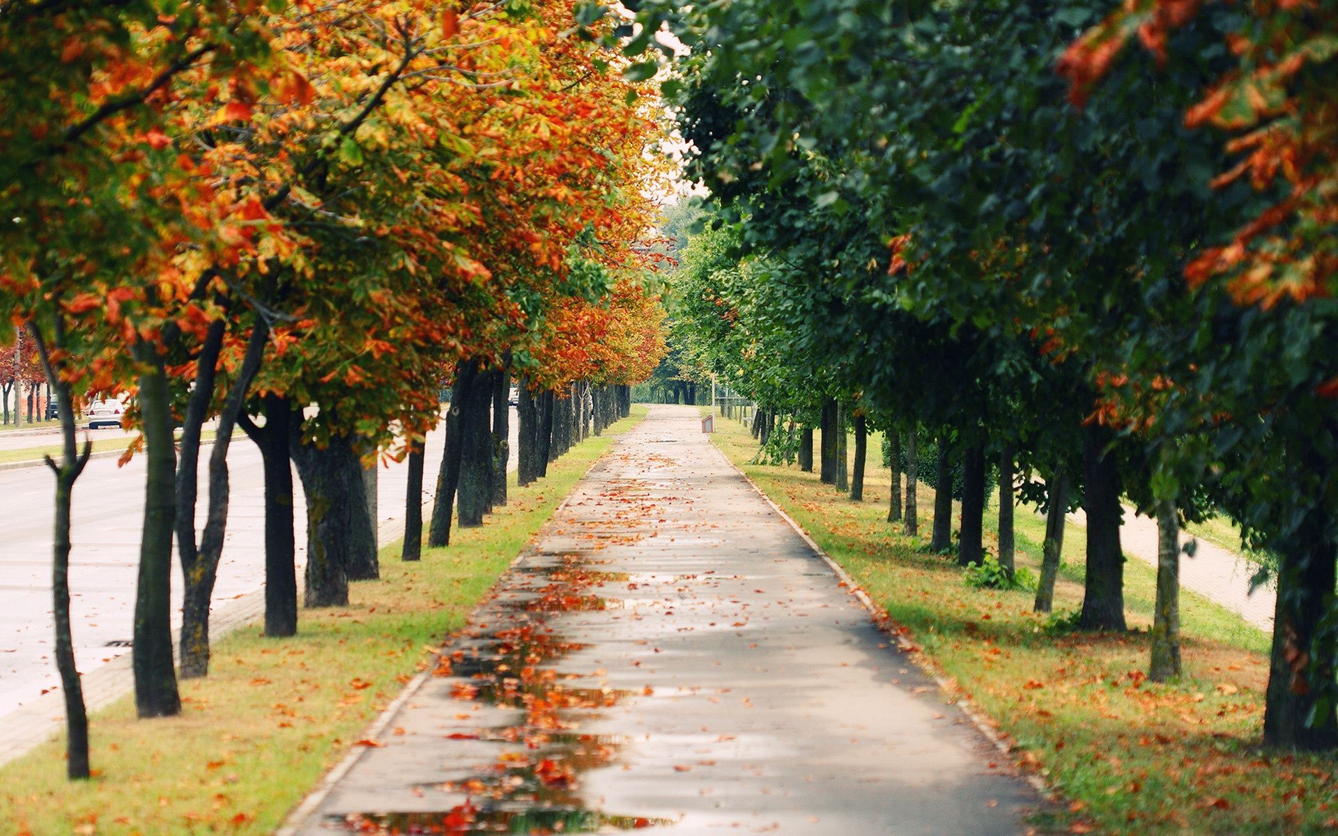 Quiet autumn alley in the park