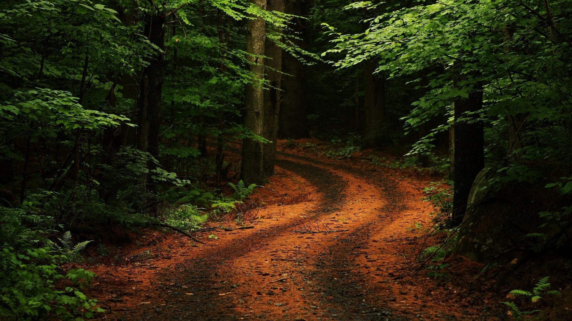 Beautiful nature a path leading into the distance a lot of greenery a forest