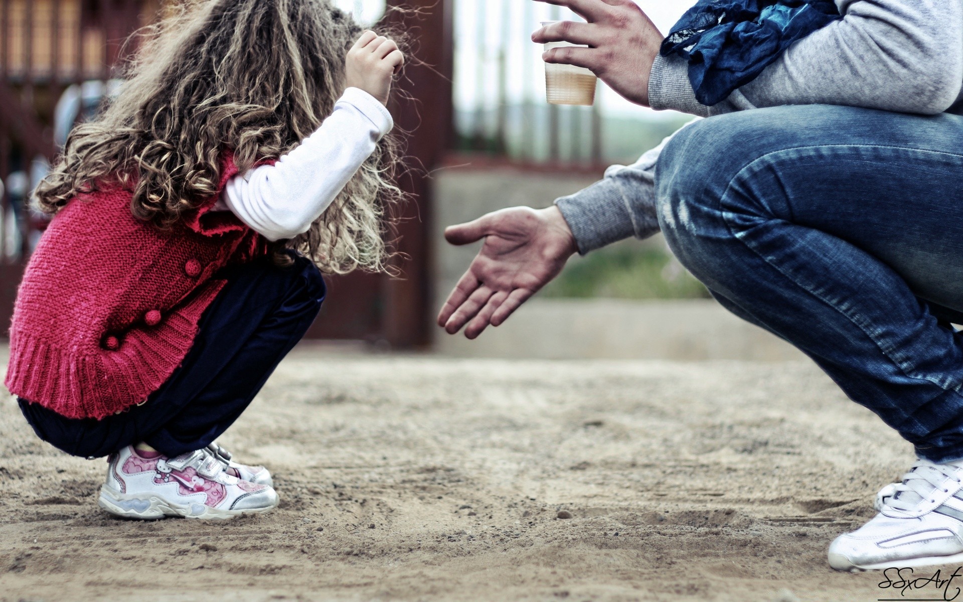Adult and child playing outside