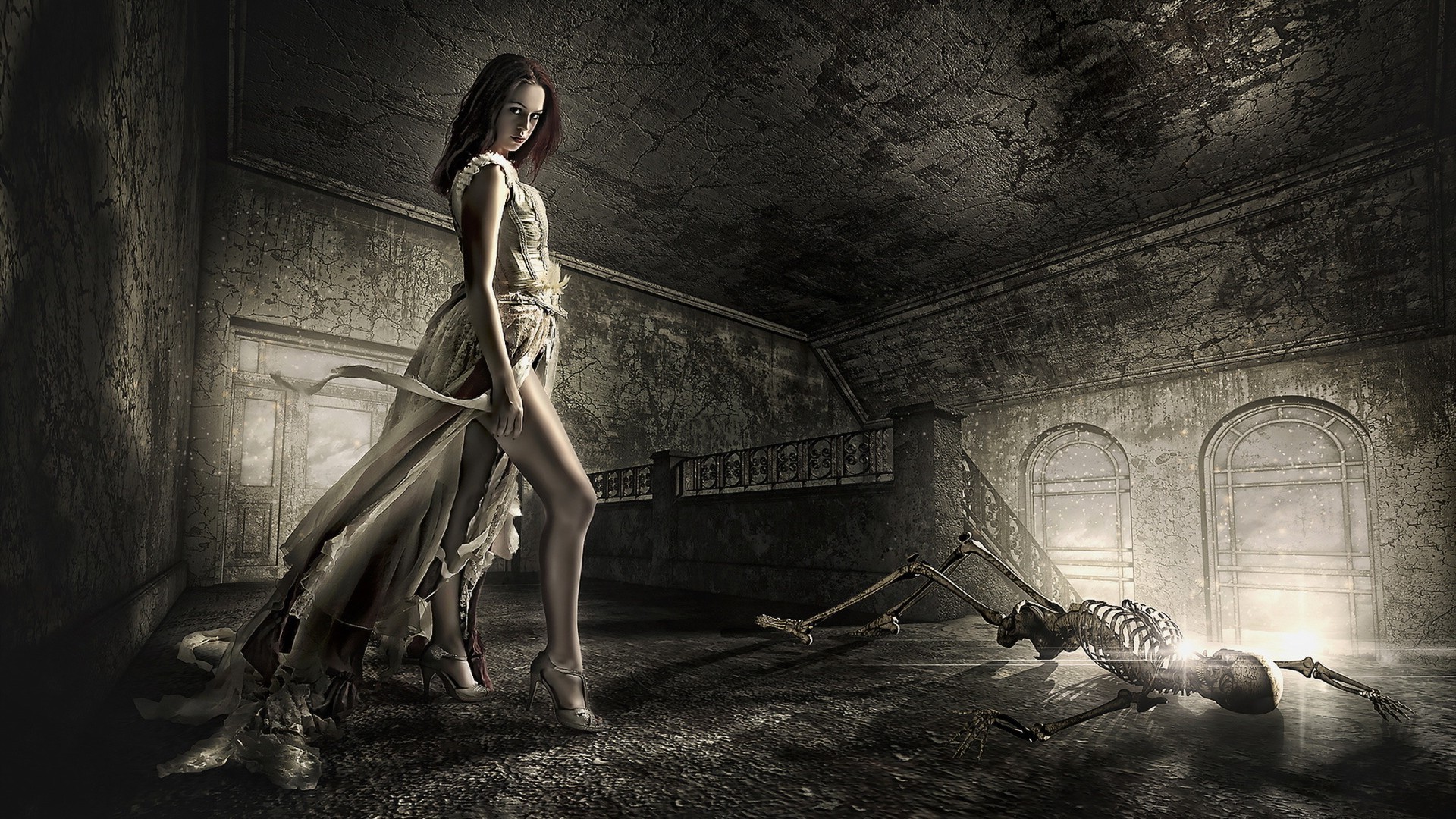 Gothic photo shoot of a girl in a historical costume