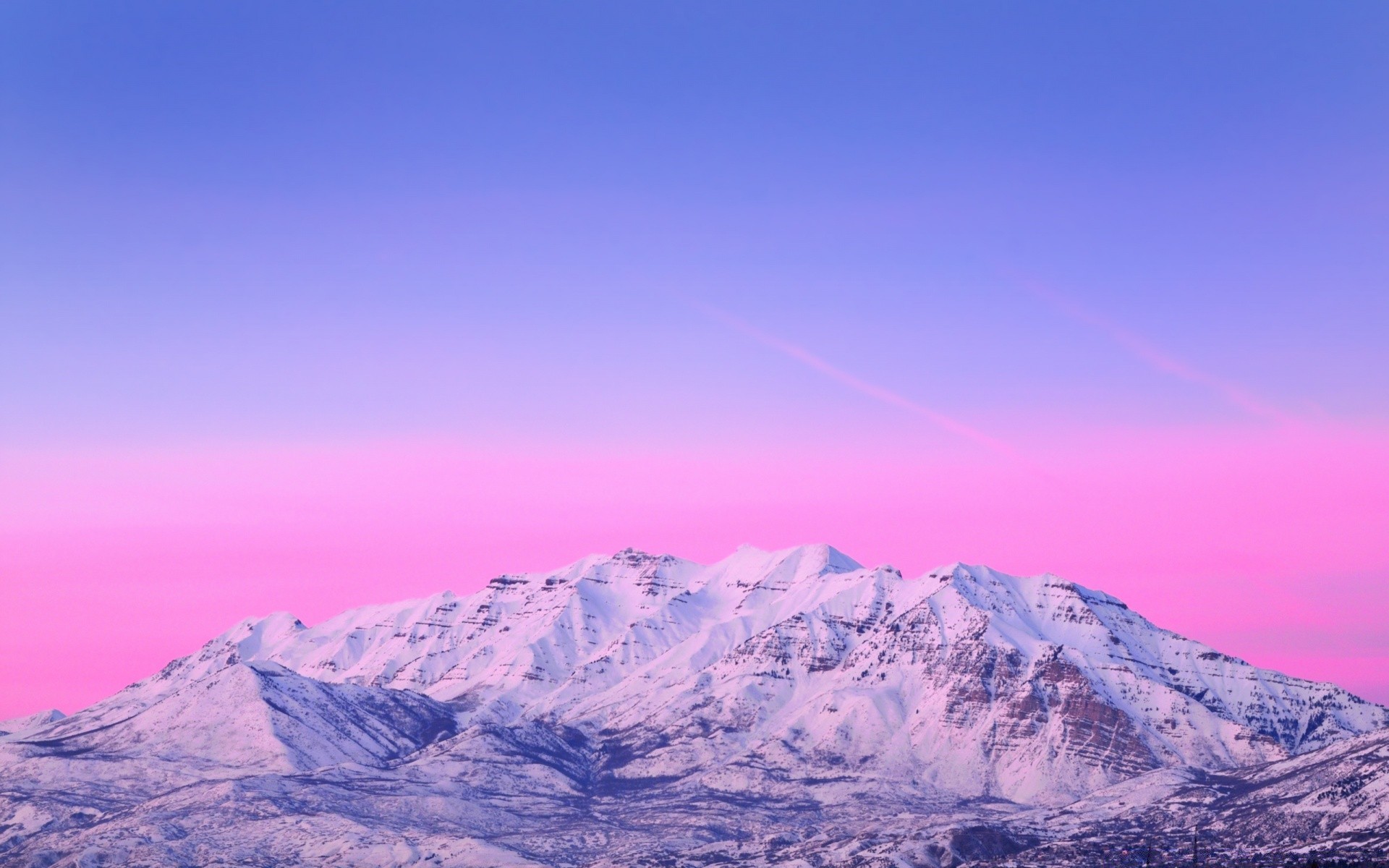 The height of the mountains and the pink sunset