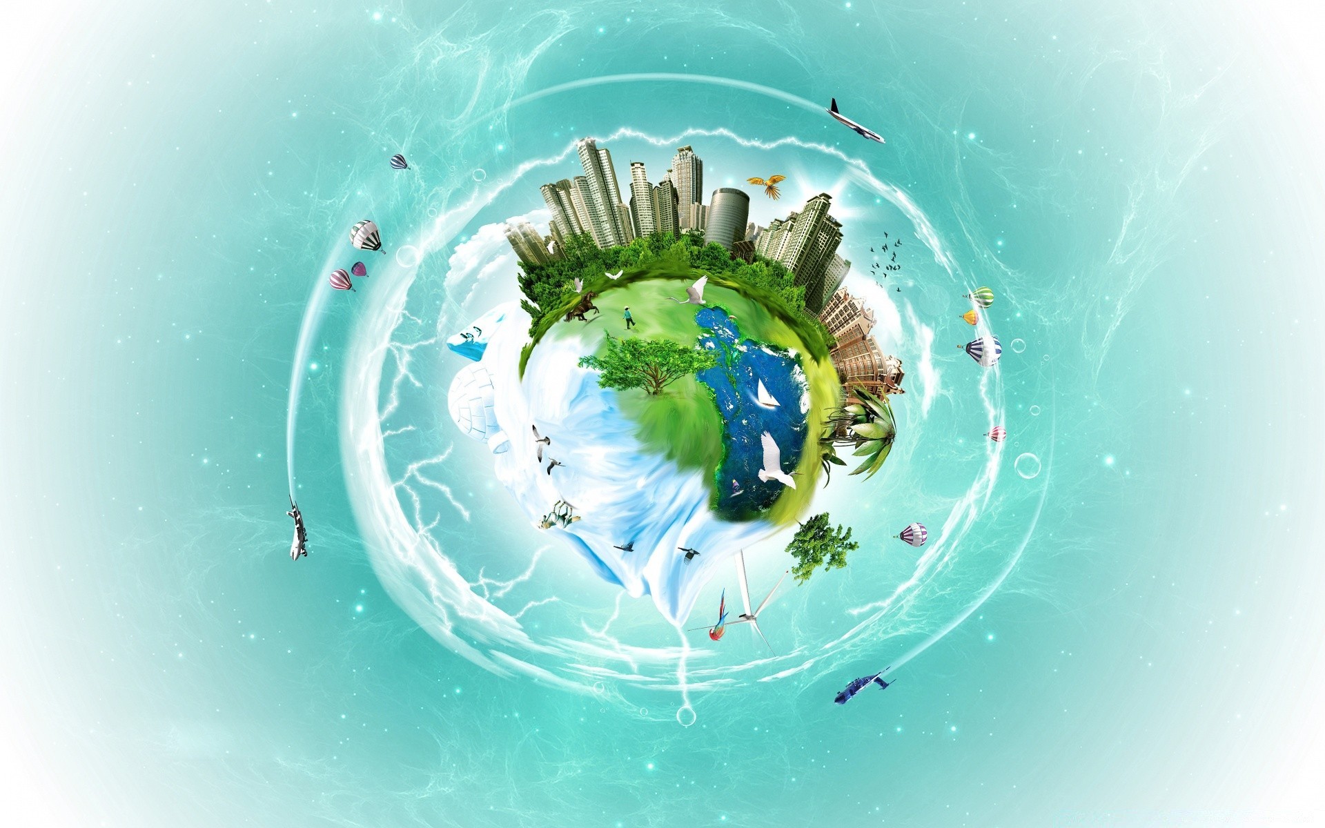 Planet earth with cities and planes abstractly