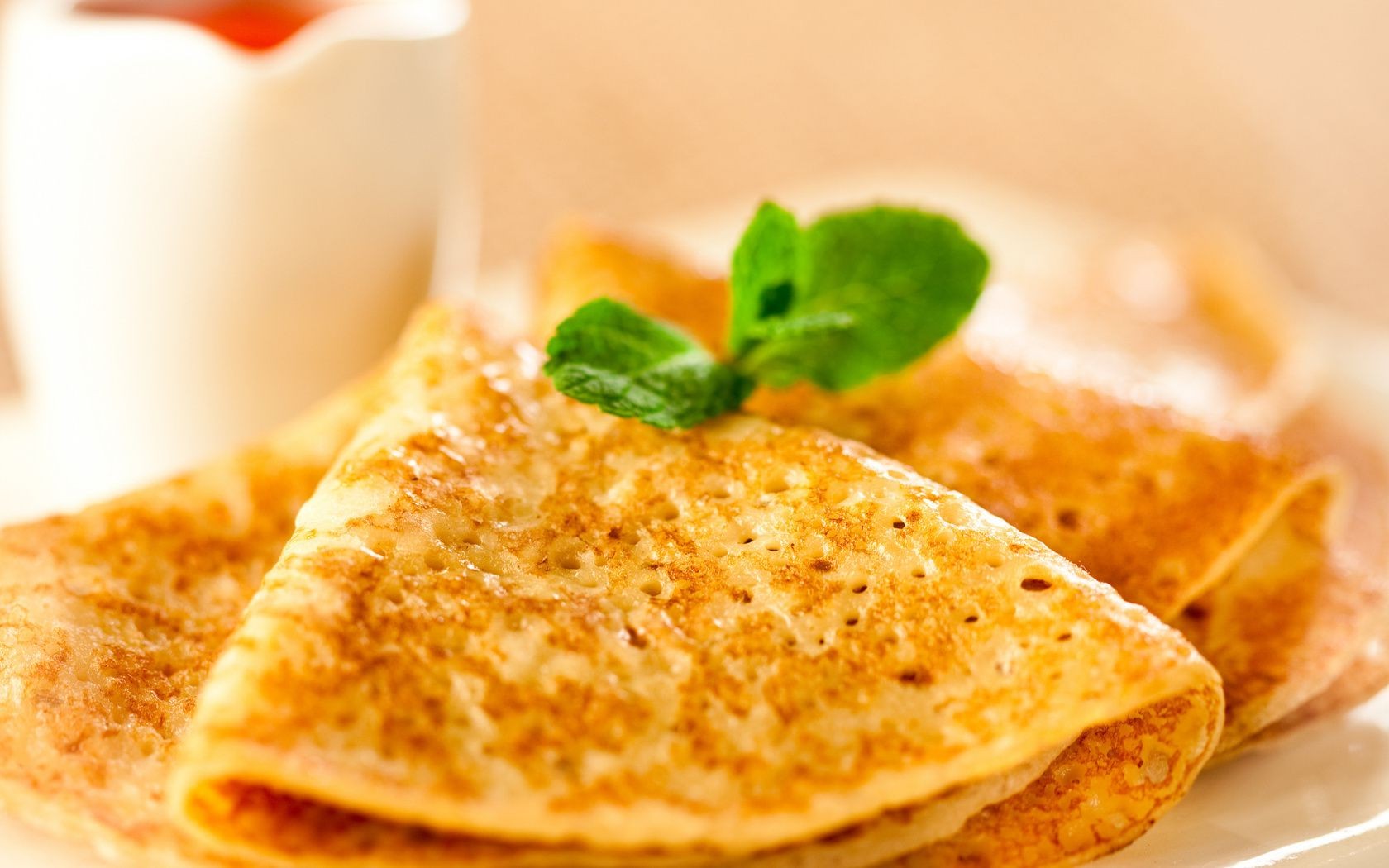 Pancakes with tea for breakfast are delicious