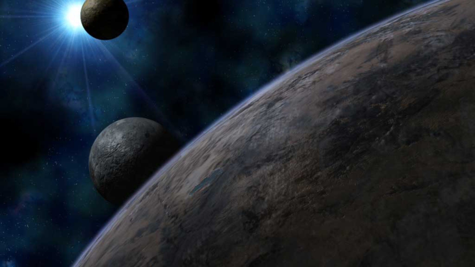 Several planets against a background of bright light