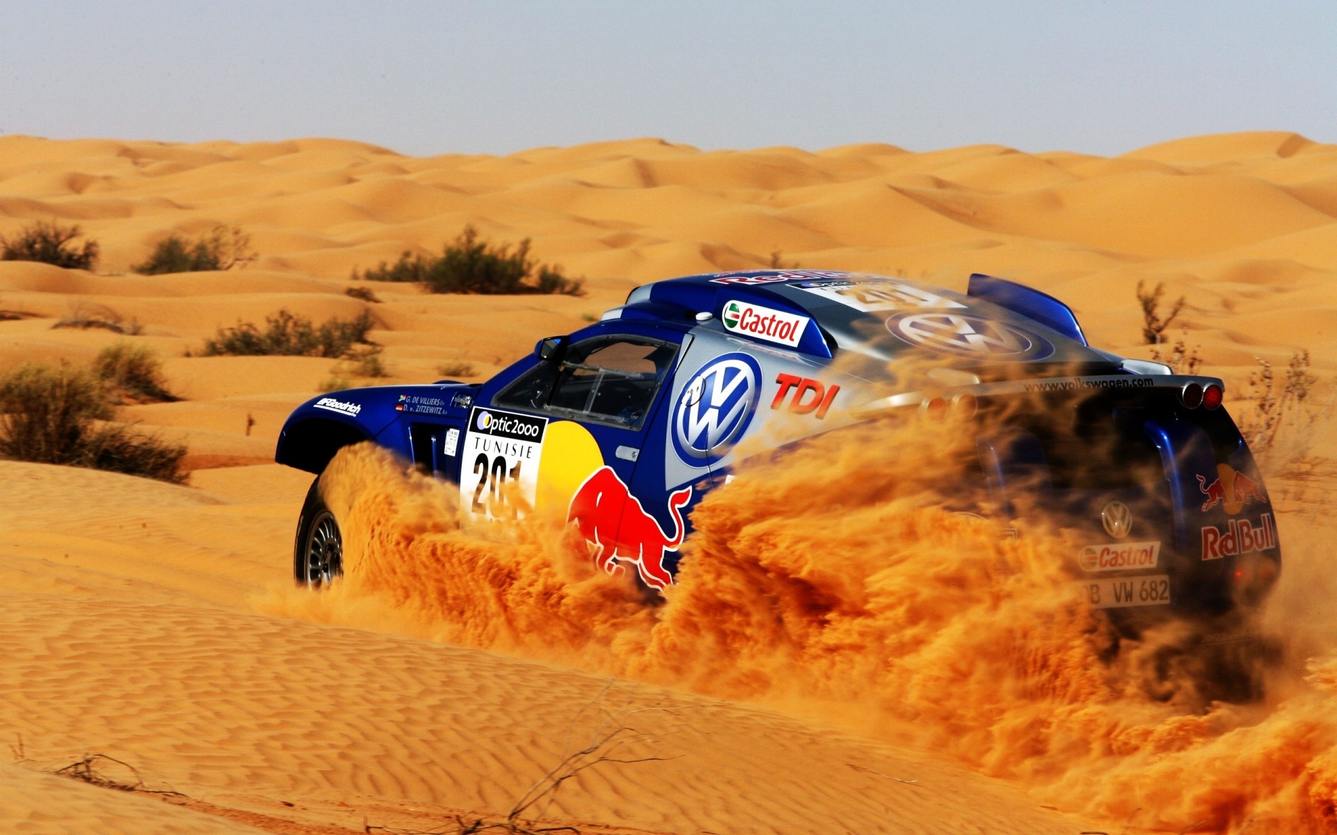 Race in the desert by car in the afternoon