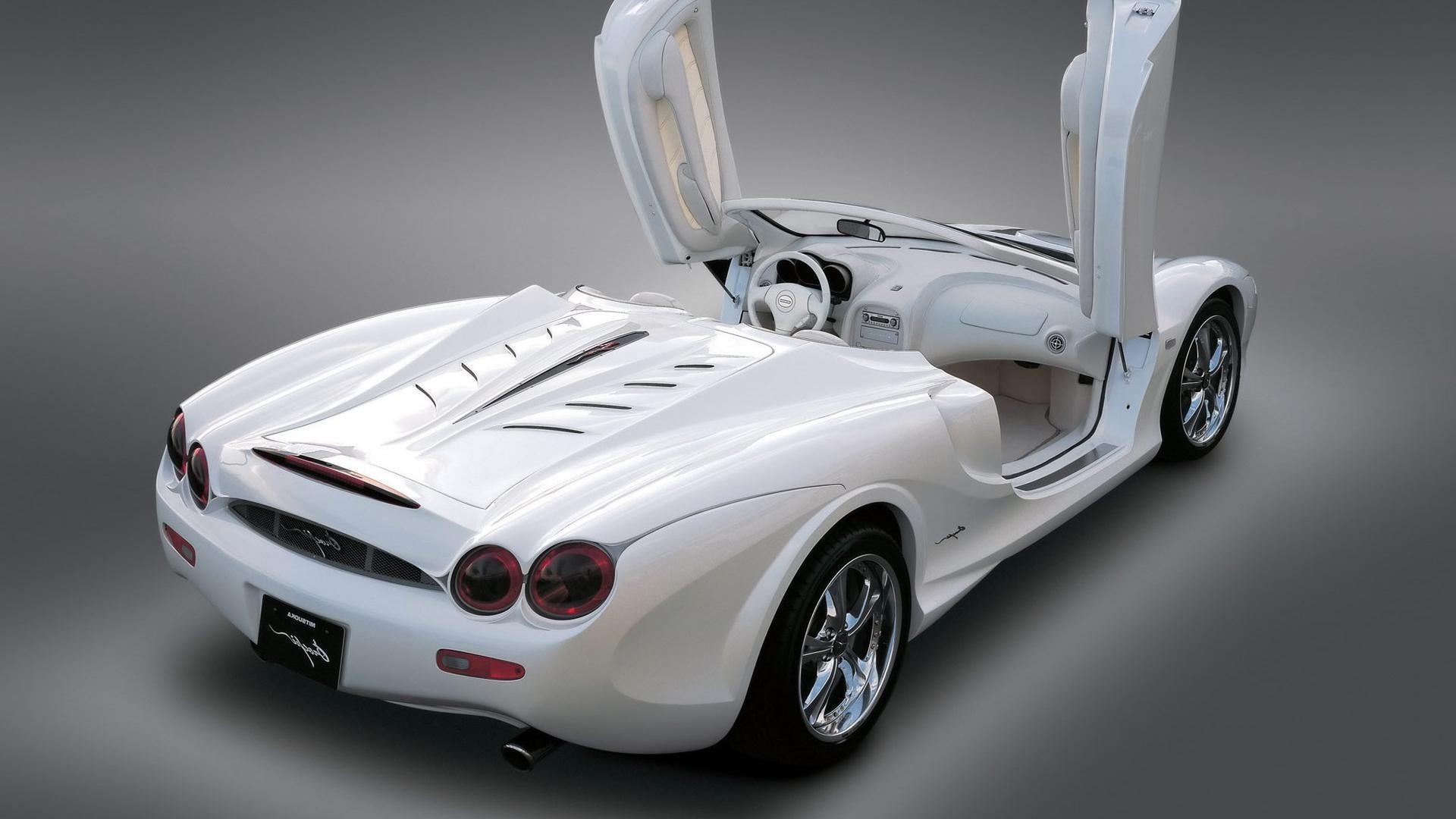 A black sports car in the premises of an elite garage is consecrated with lamps