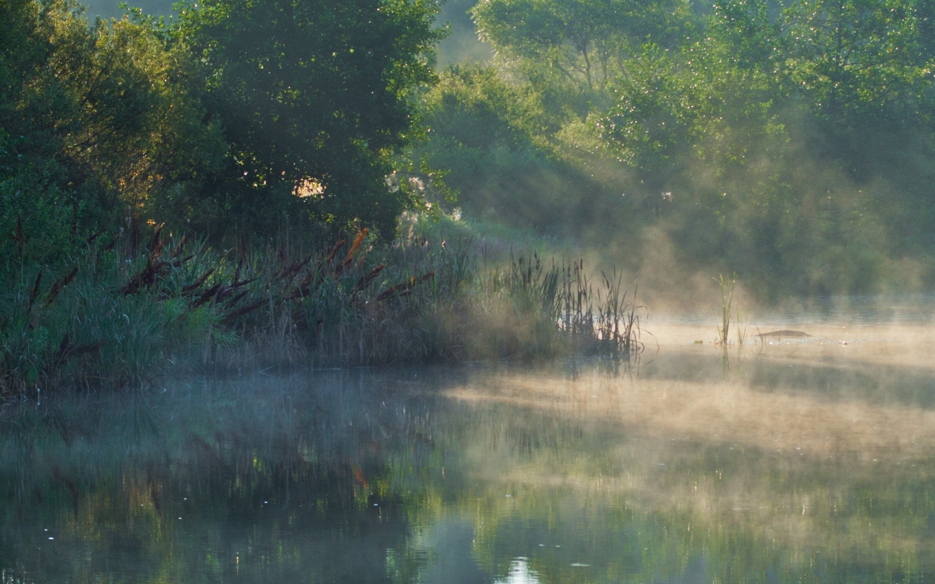 With difficulty, the rays of the sun break through the thickness of the treesWith difficulty, the rays of the sun break through the thickness of the trees