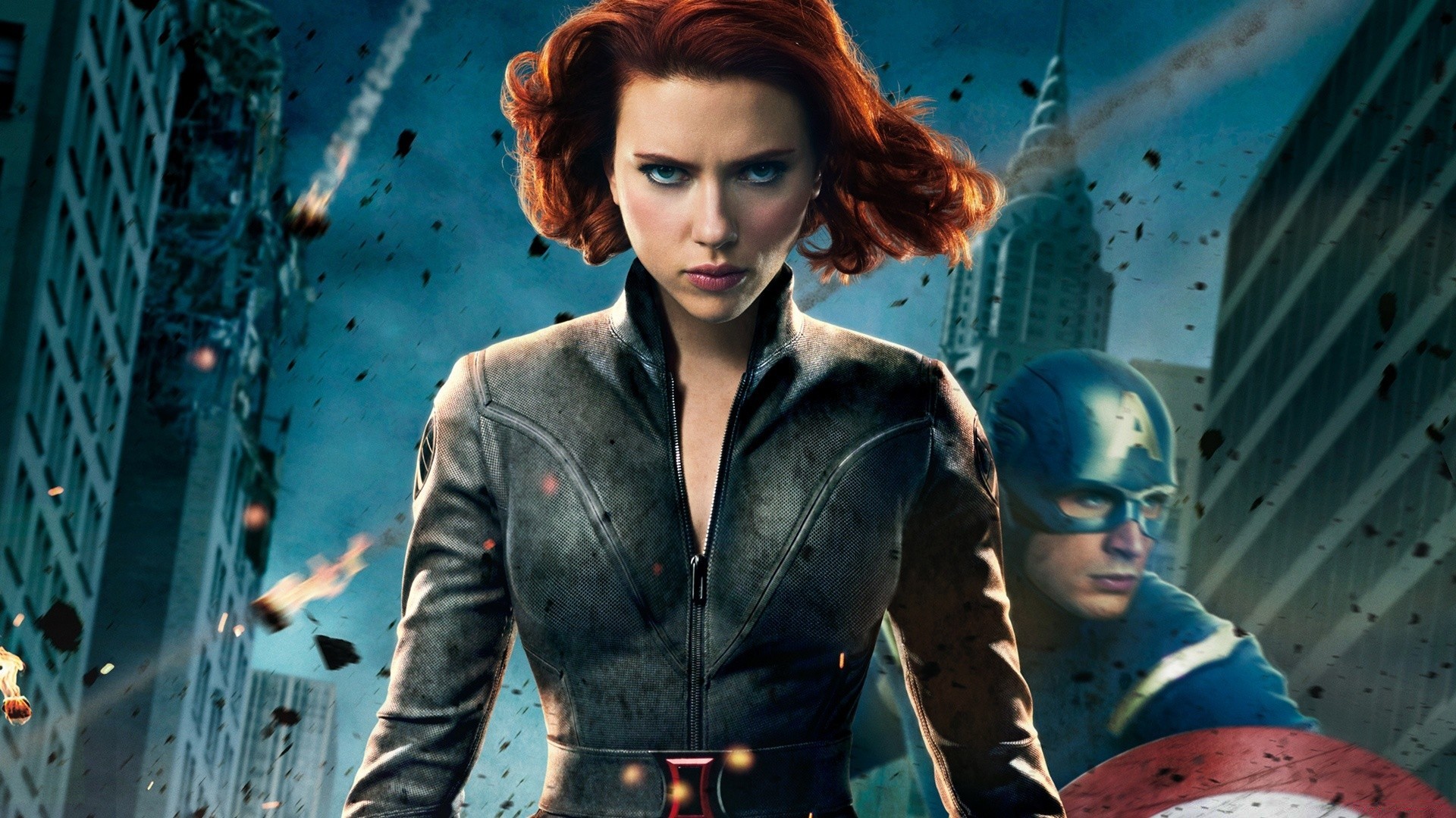 A red-haired girl in a leather suit