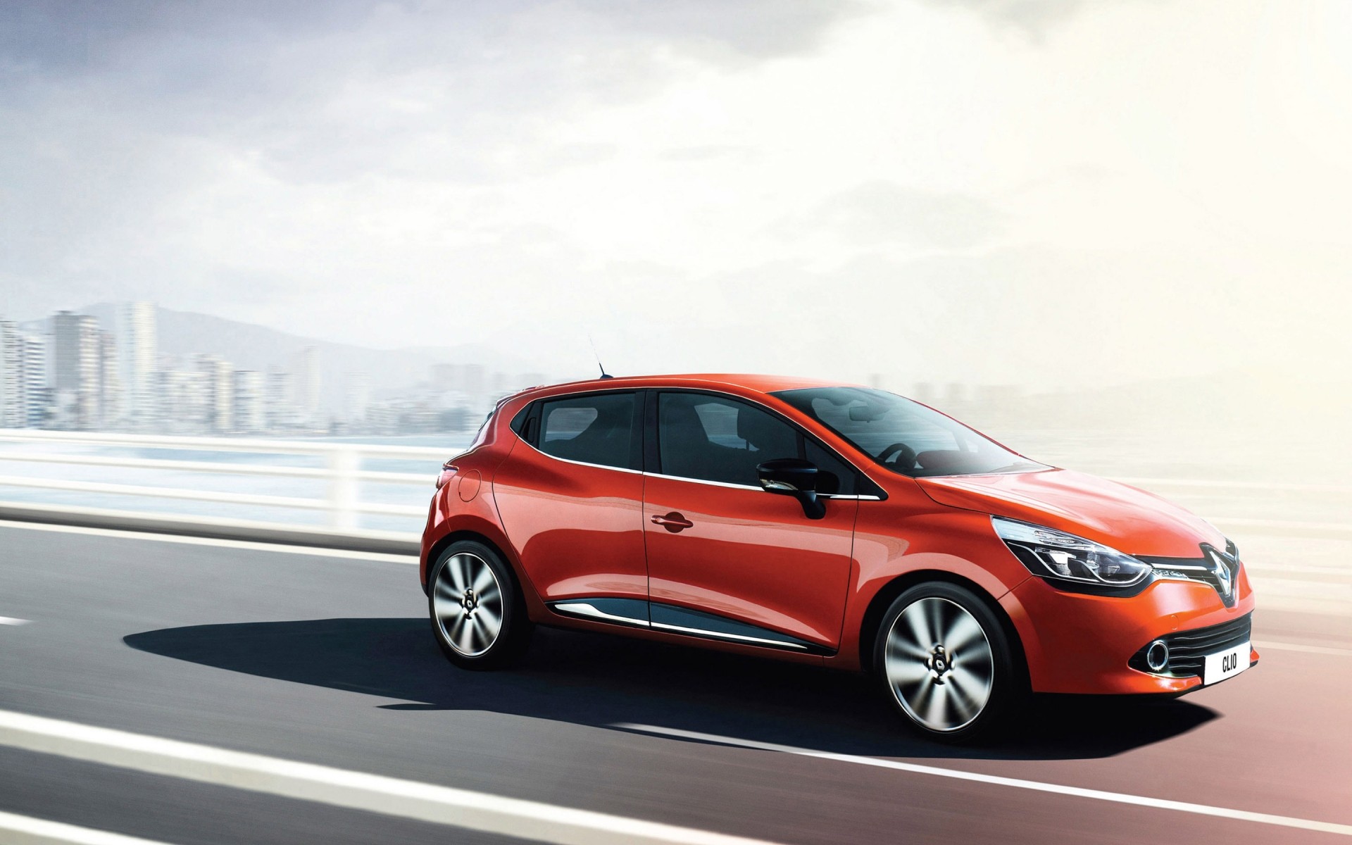 Red Renault rushes along the road