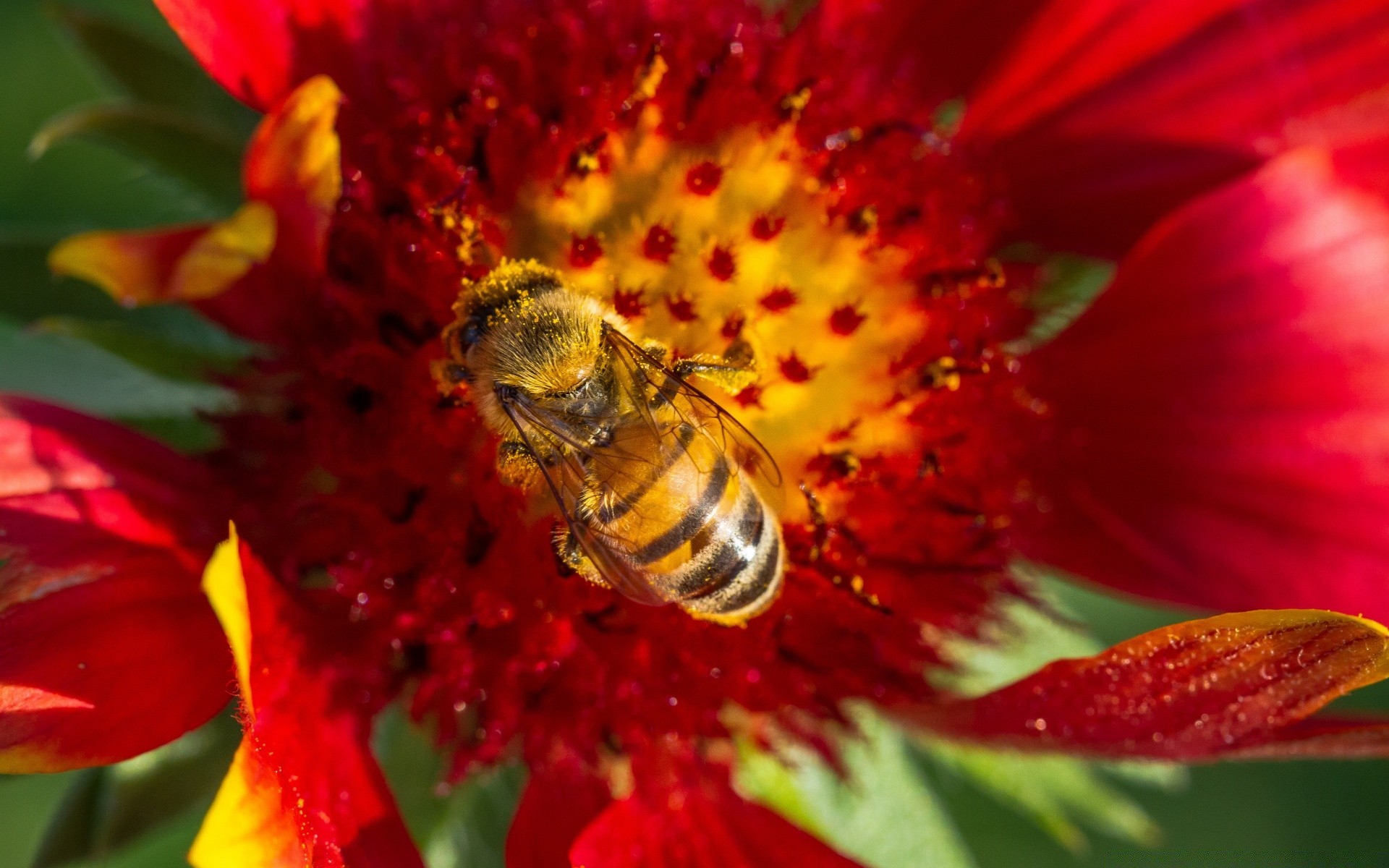 A bee on a red flower near