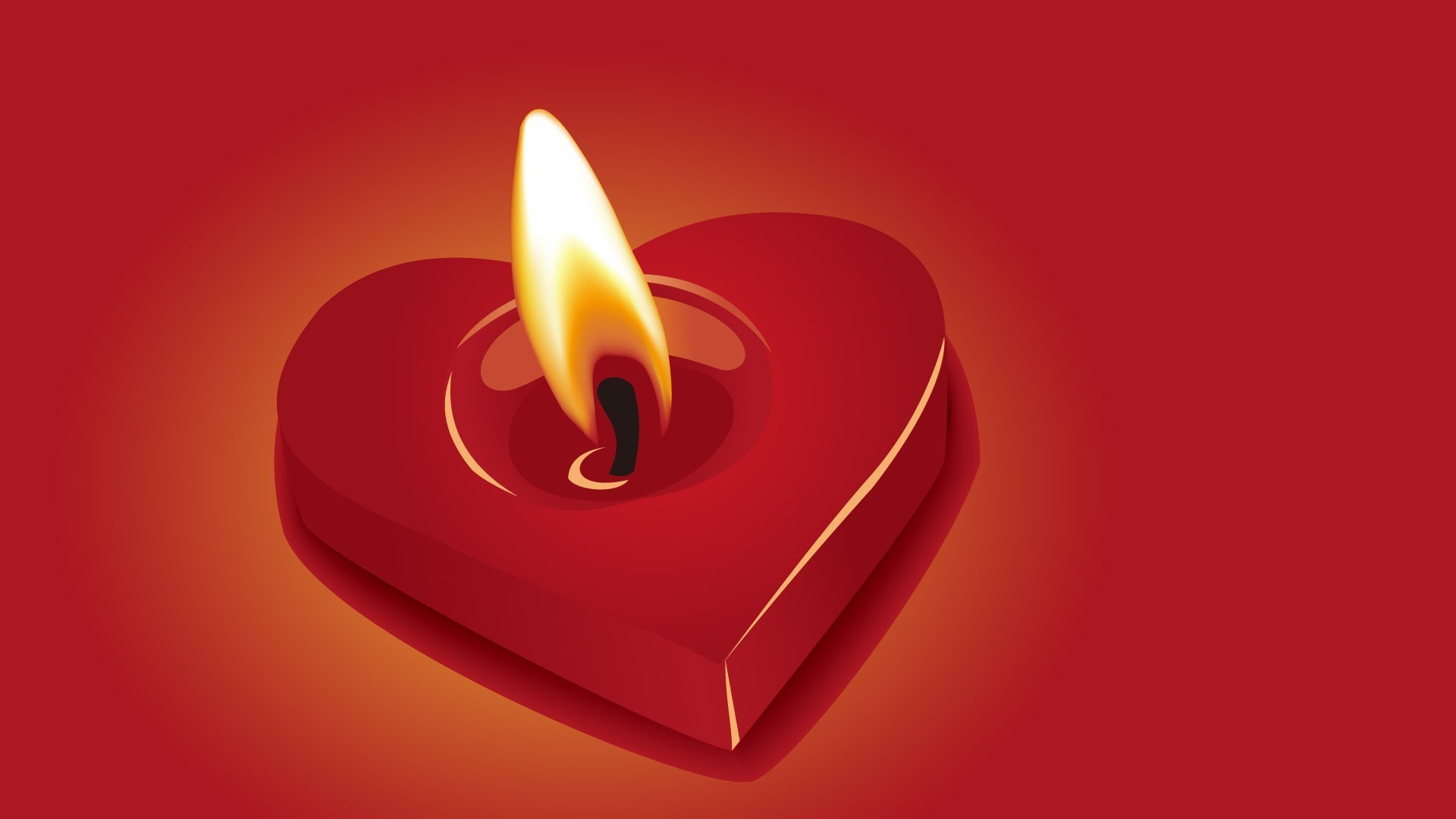 Burning red candle in the shape of a heart