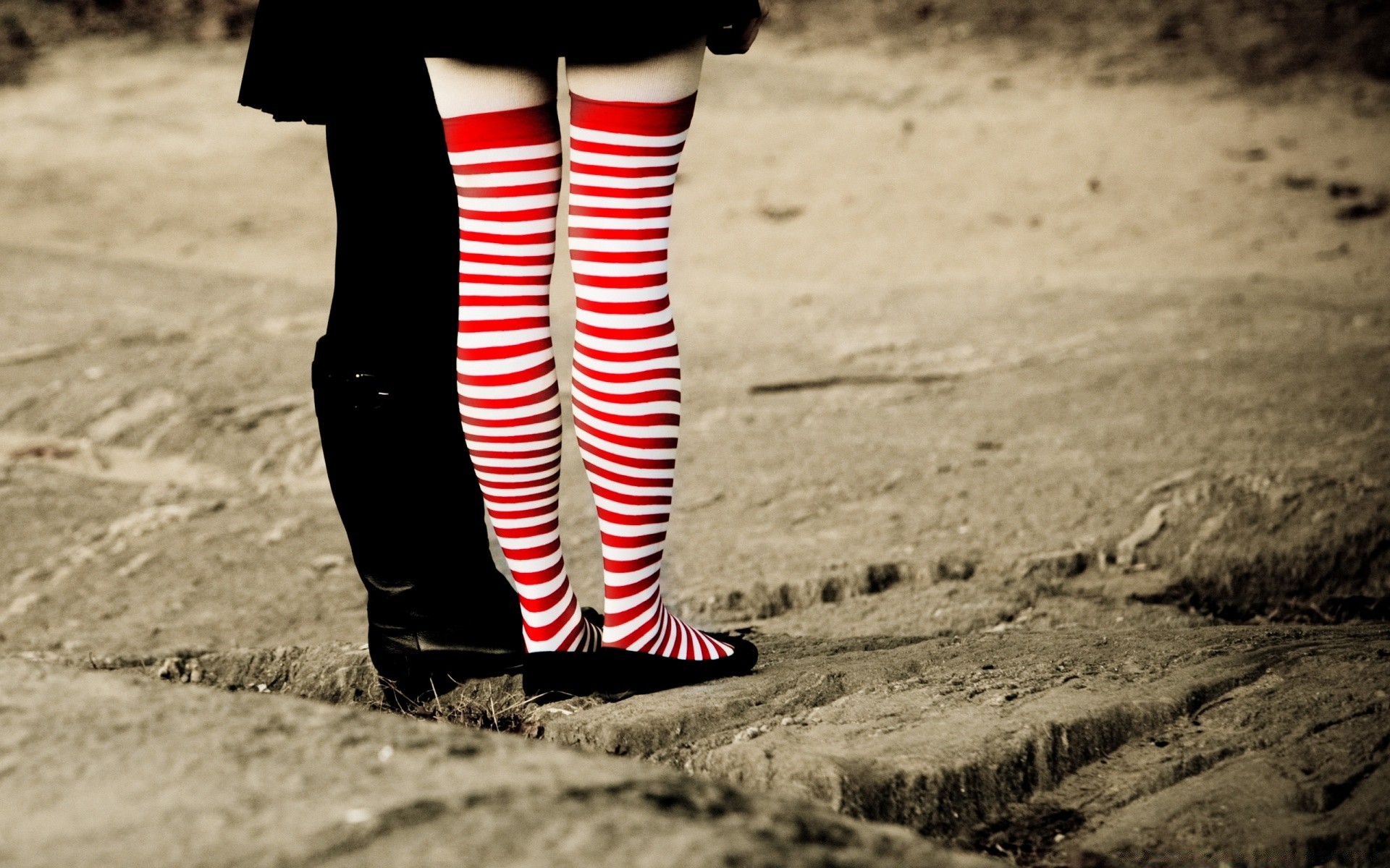 A girl in red leggings is standing on the road
