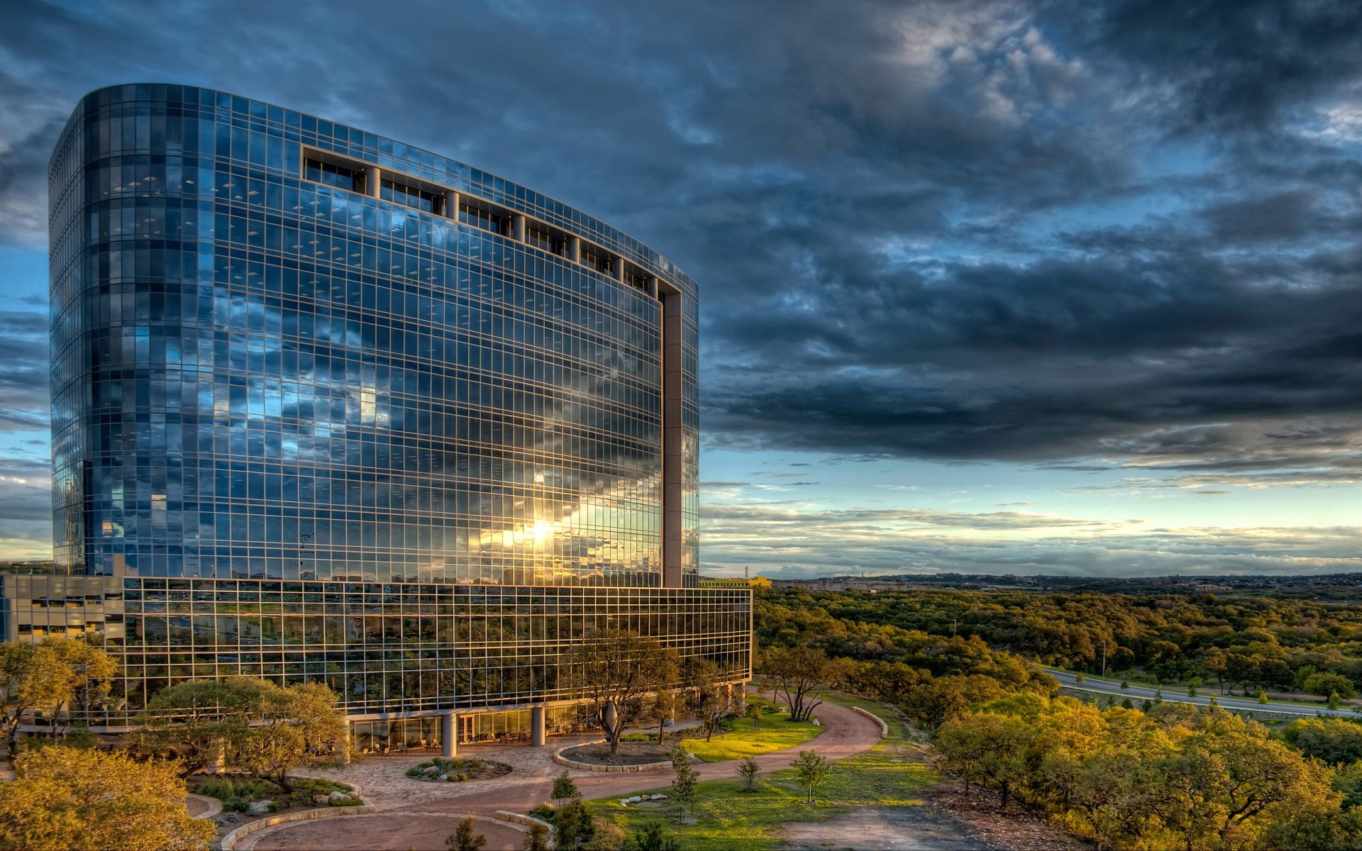 A glass skyscraper reflecting the sky