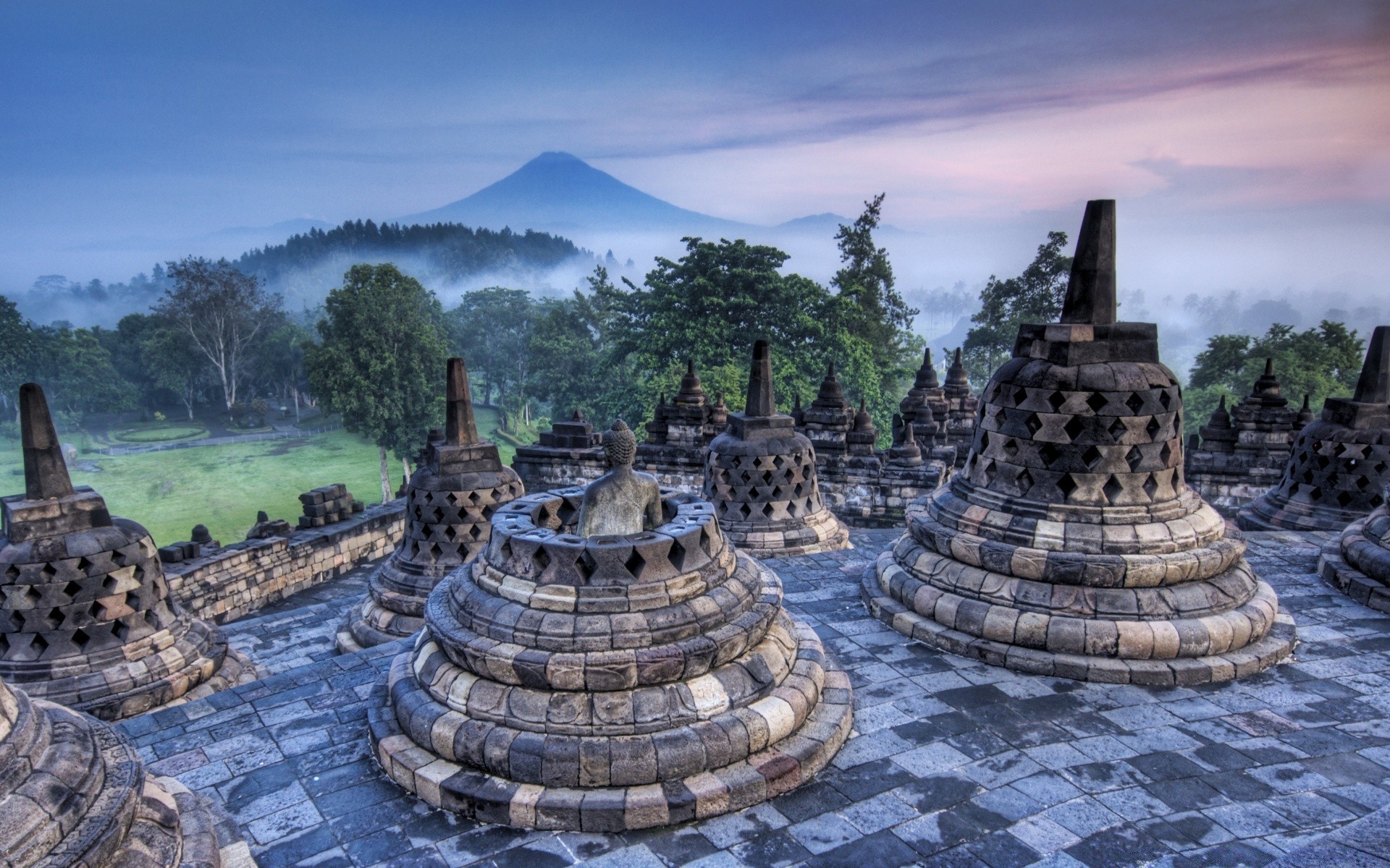 At sunset, a ray of sunlight broke through the stone pillars