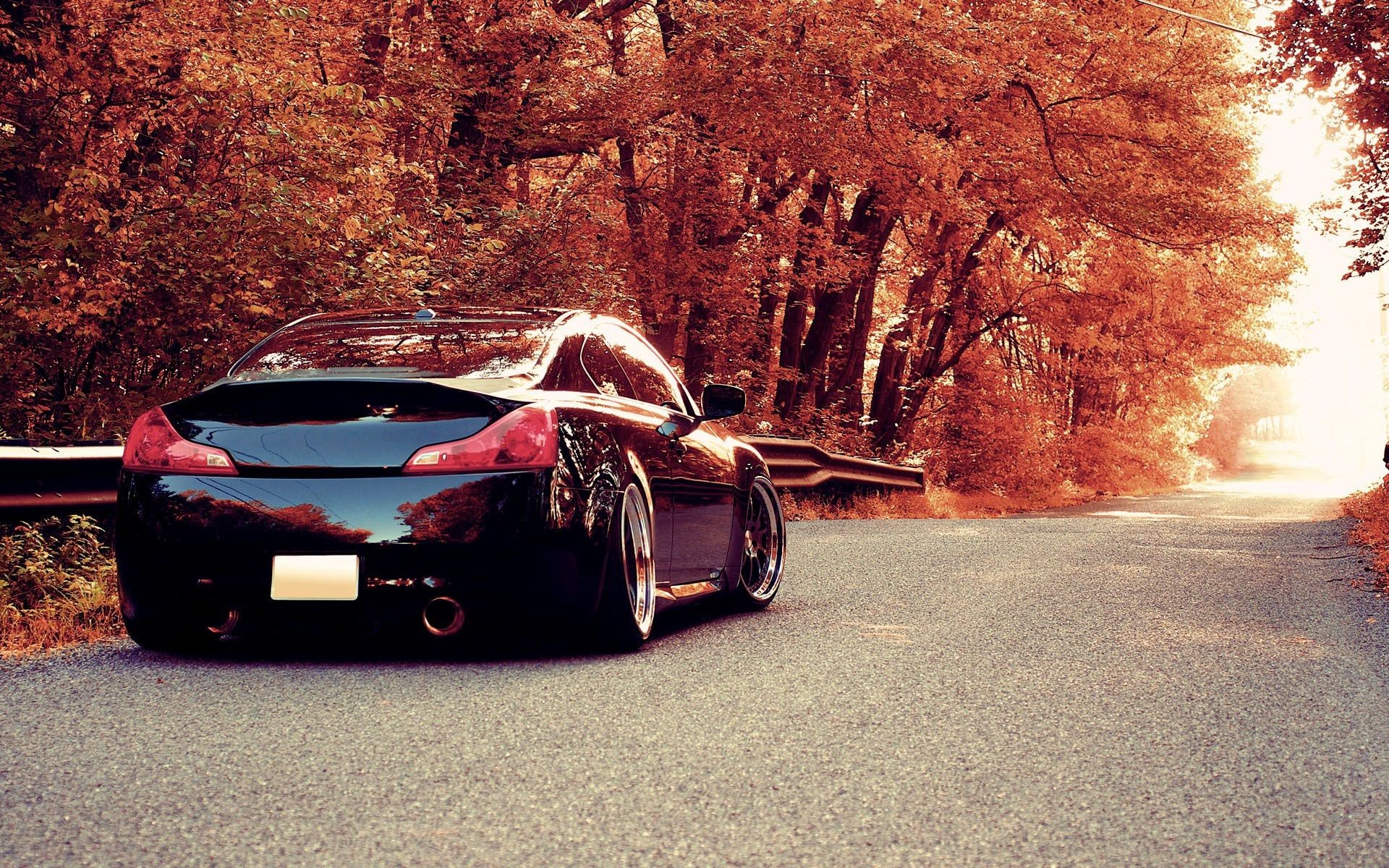 A car on a country road in autumn