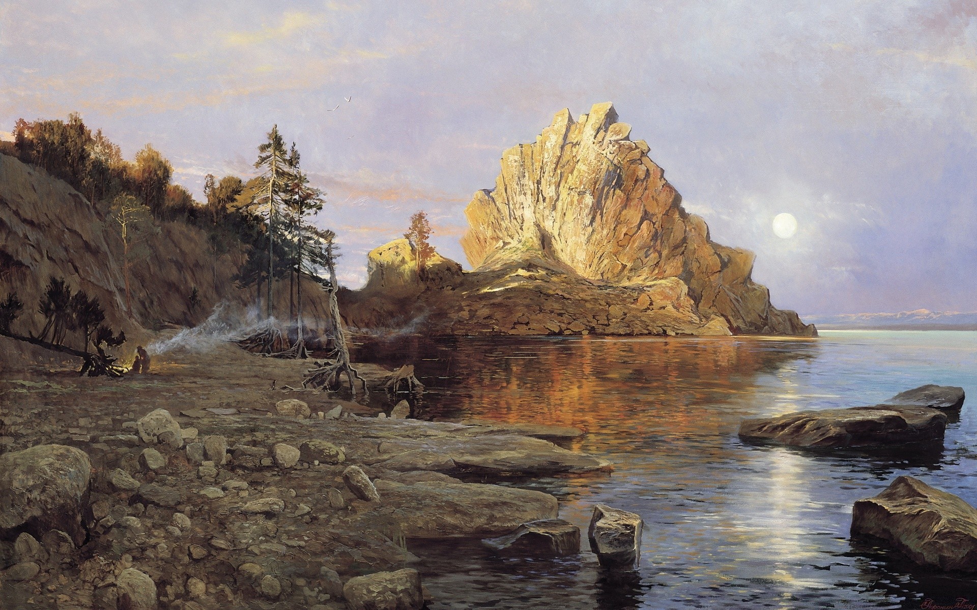 The twilight of the rocks over the waters of the ocean