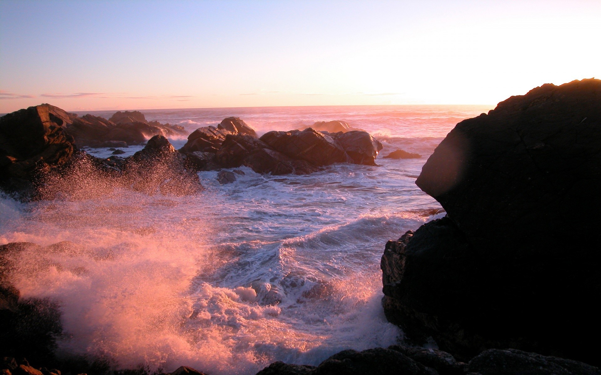 White waves rocks sky