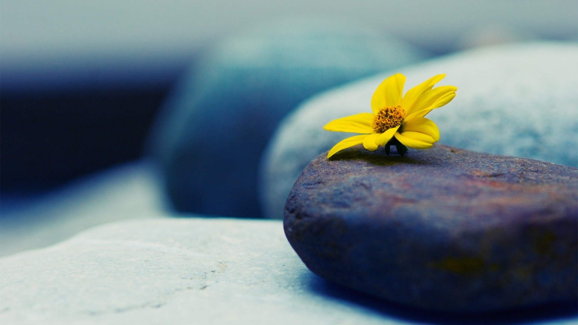Yellow flower on a brown stone