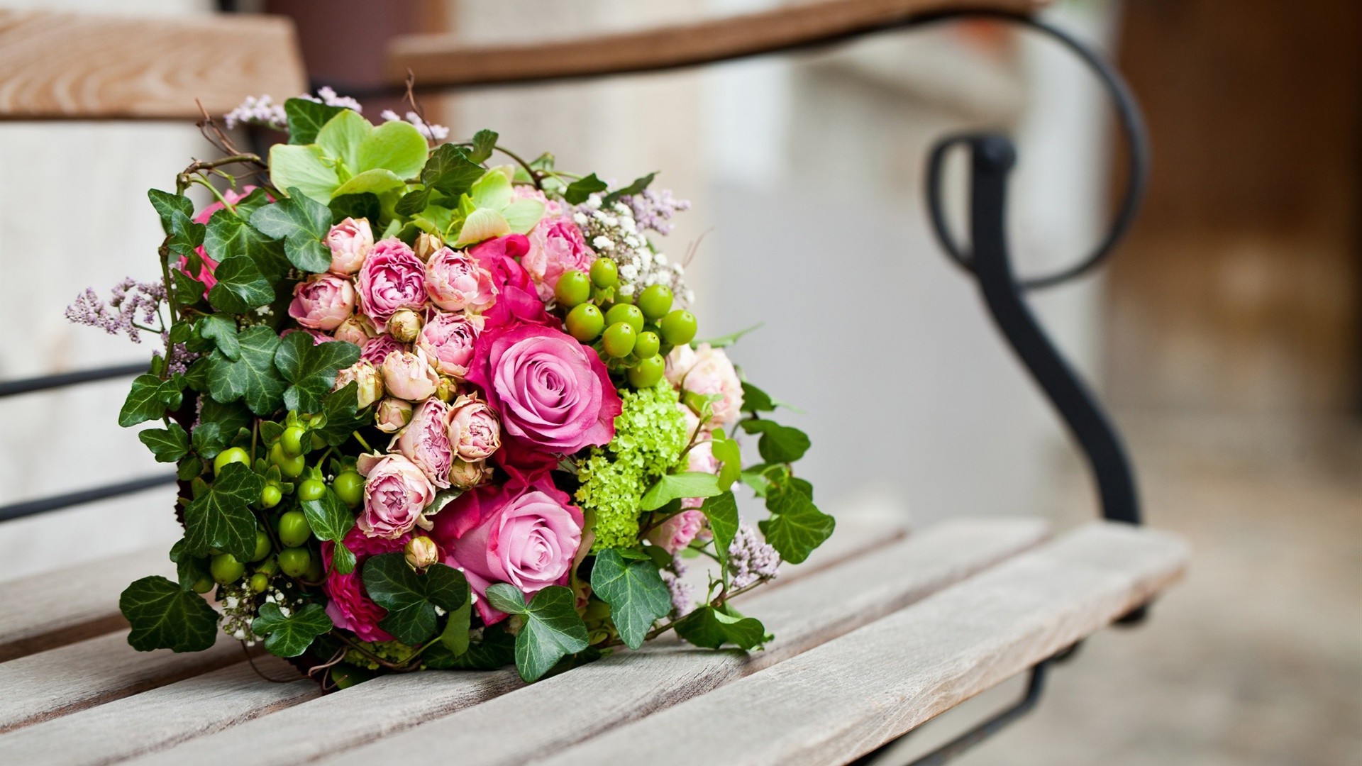 Wedding bouquet forgotten on the bench