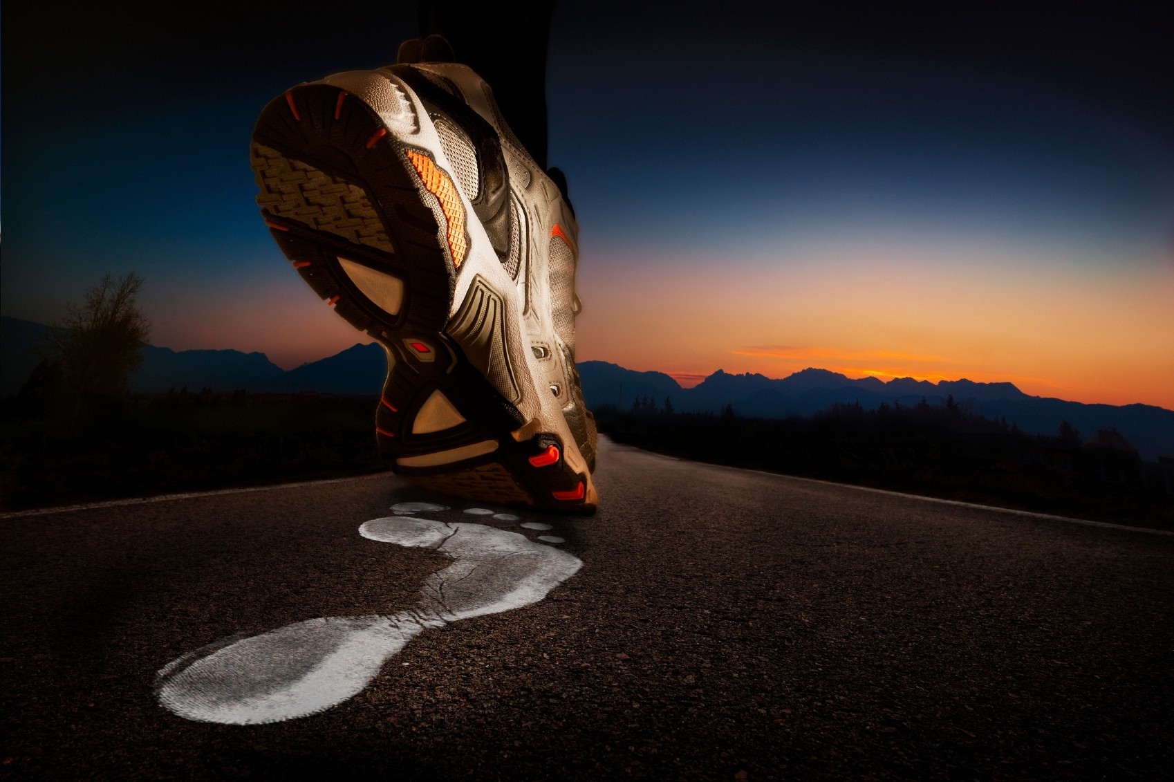 The asphalt of the highway running away into the distance