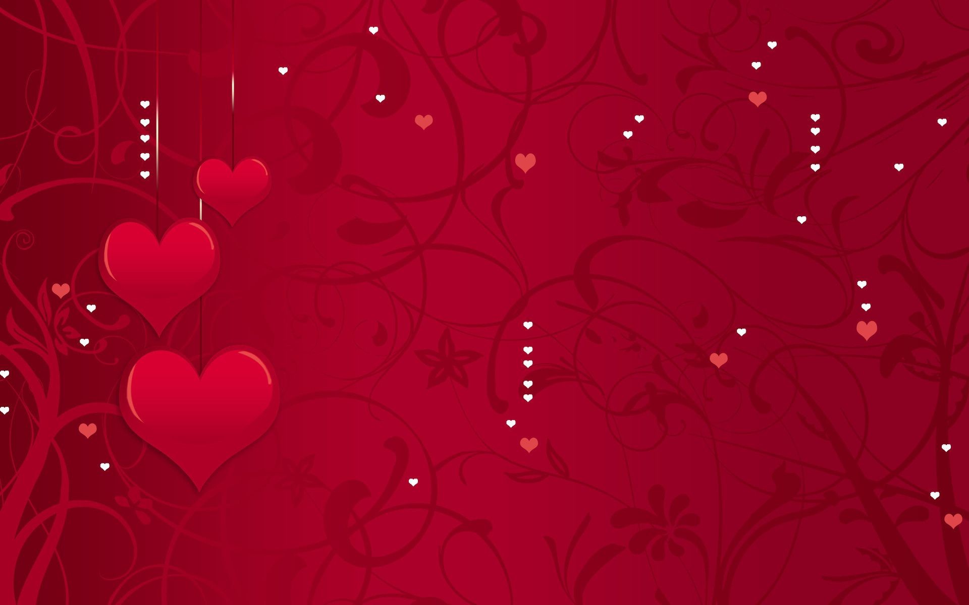 Red hearts on a background with flowers