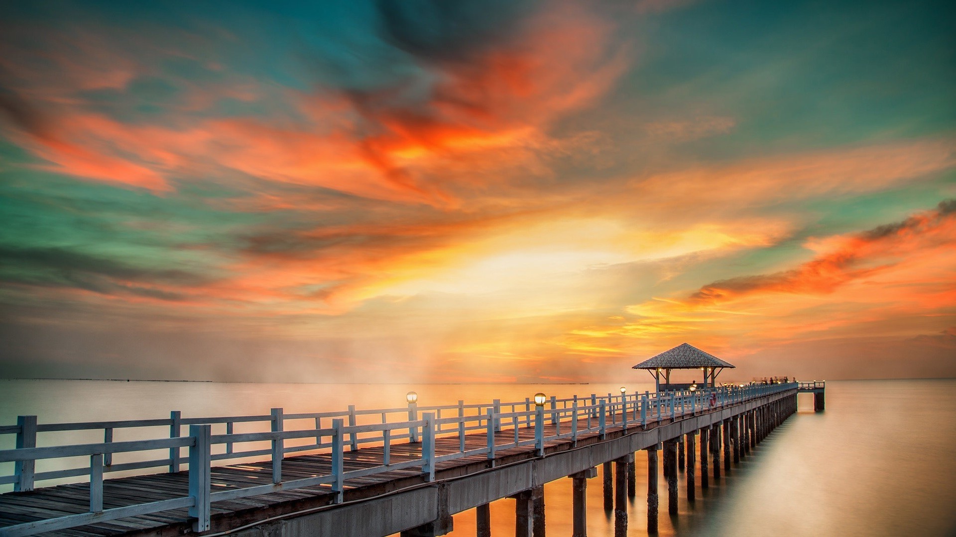 A long pier stretching into the sea