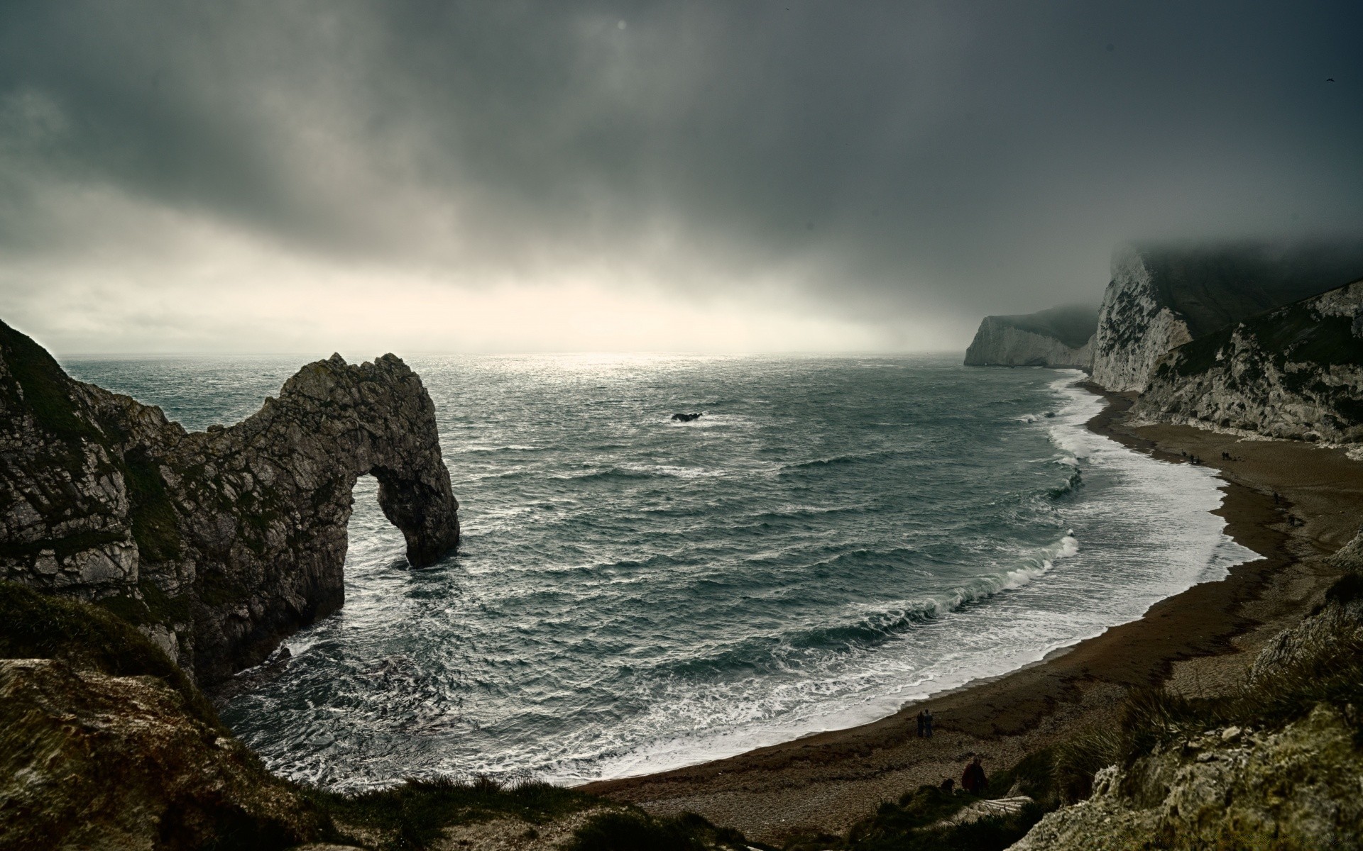 Mountainous terrain with rocks and vegetation overlooking the sea