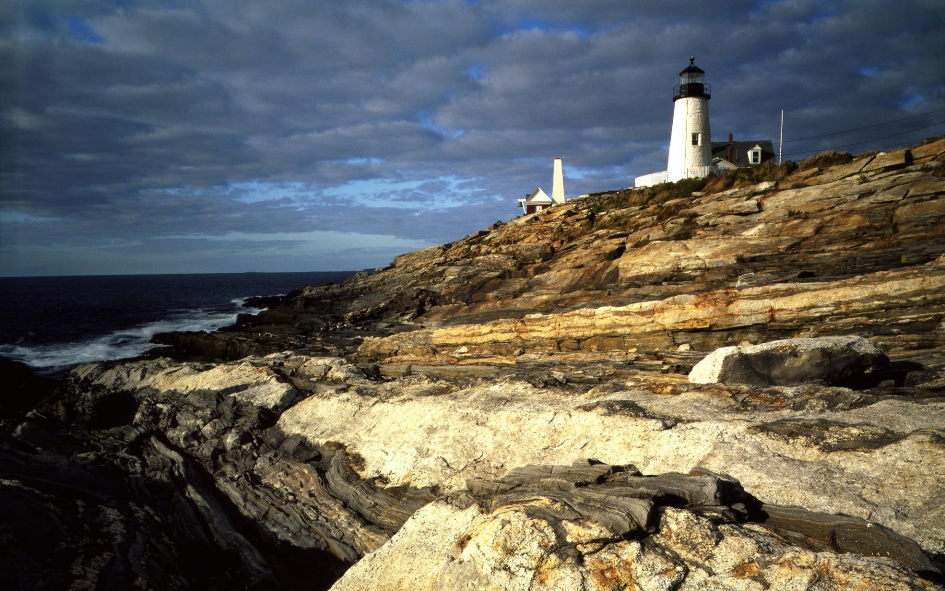 Lighthouse on the mountain and cloudy sky over the sea Lighthouse on the mountain and cloudy sky over the sea