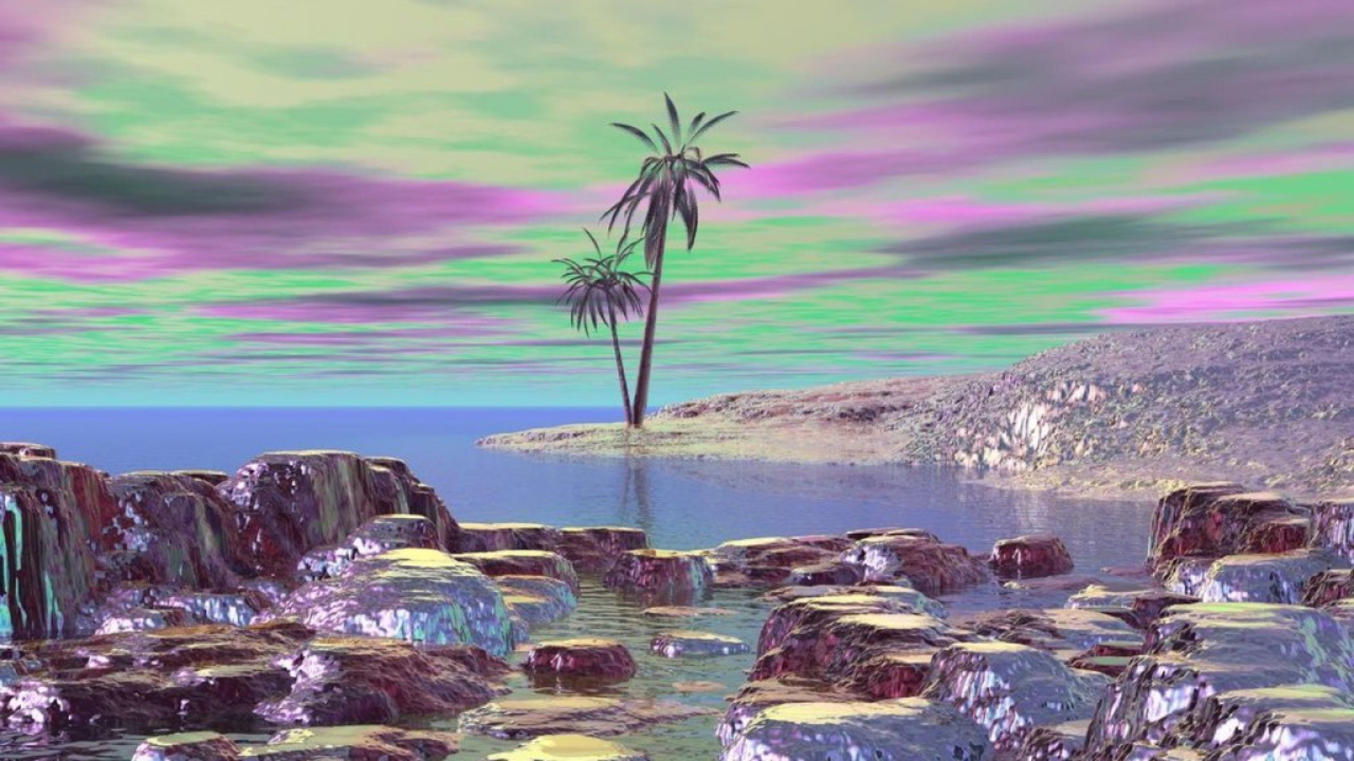 Glass rocks rise above the water