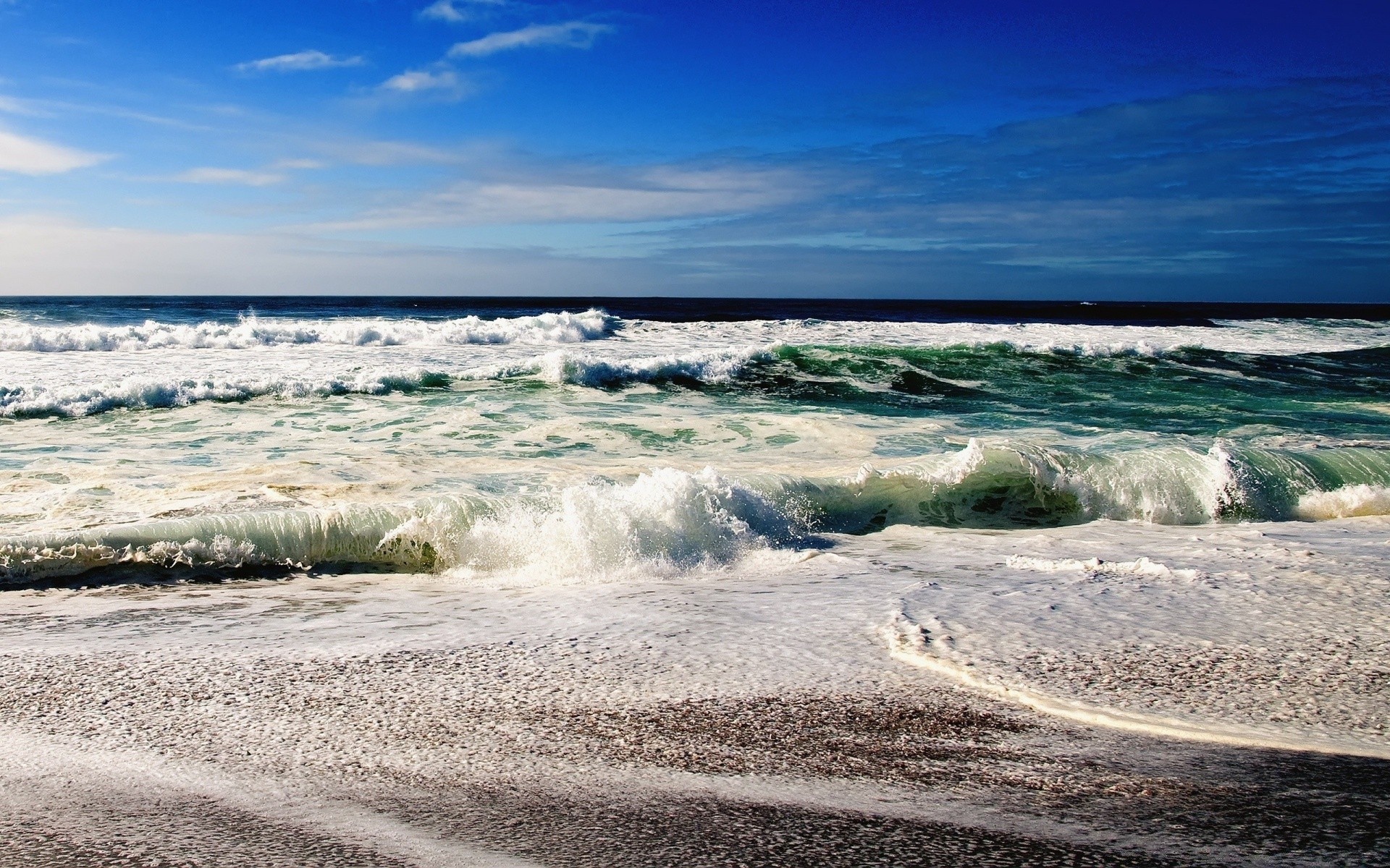 Small waves on a sandy beach