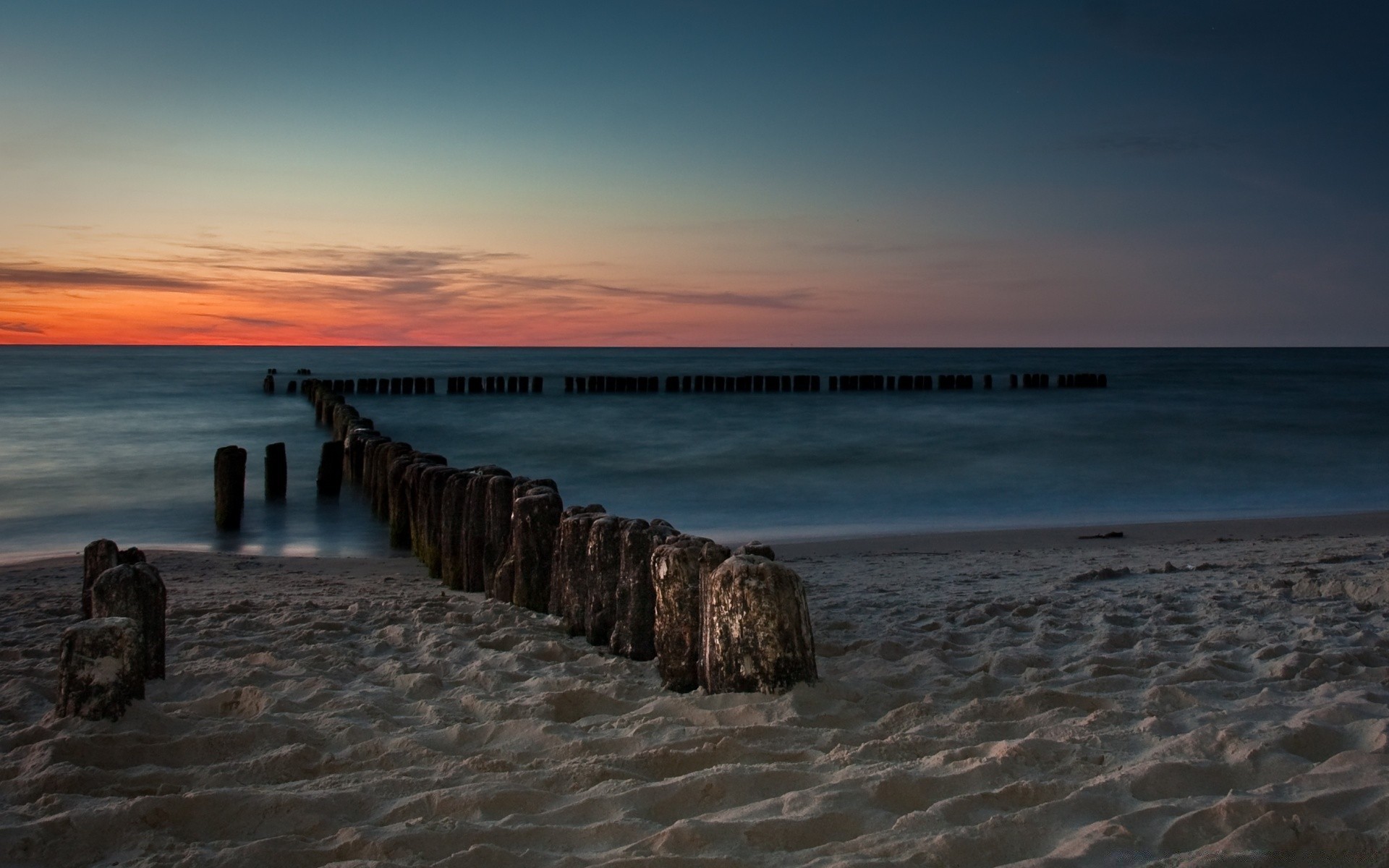 Sea at night, white sand