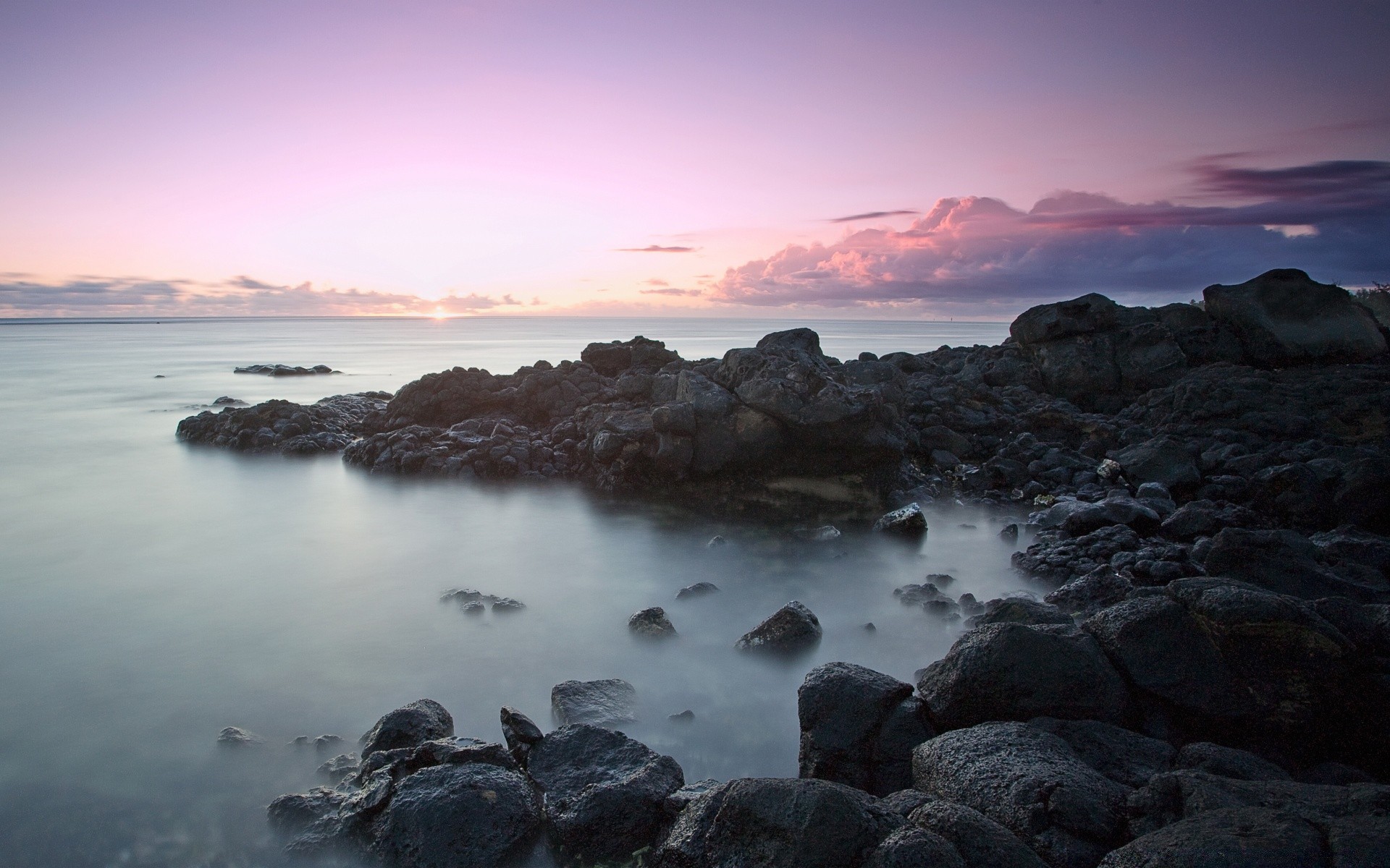 Beautiful seascape with waves, crumbly sand and sloping rocks