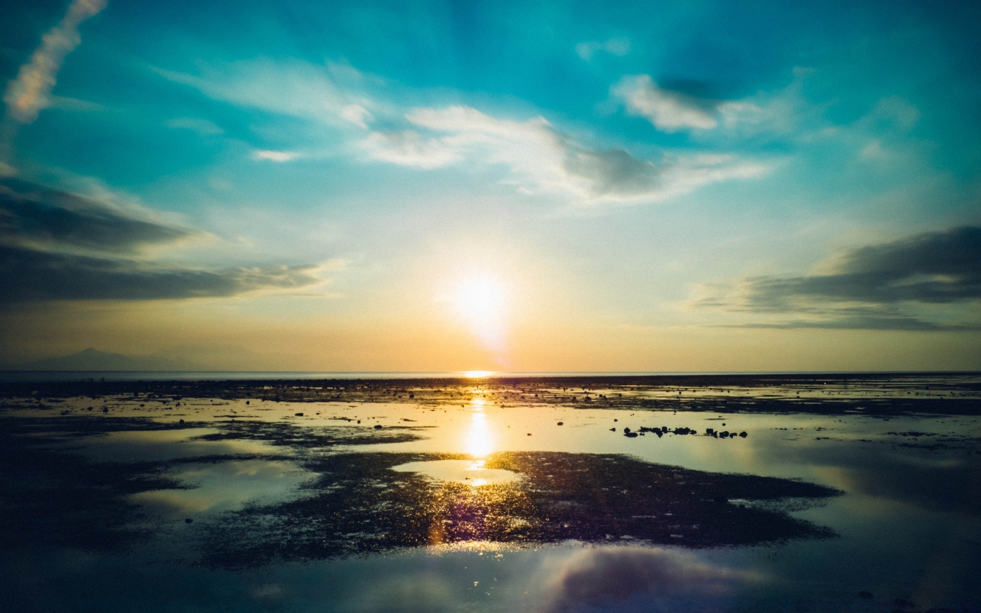 Dawn rays on the seashore