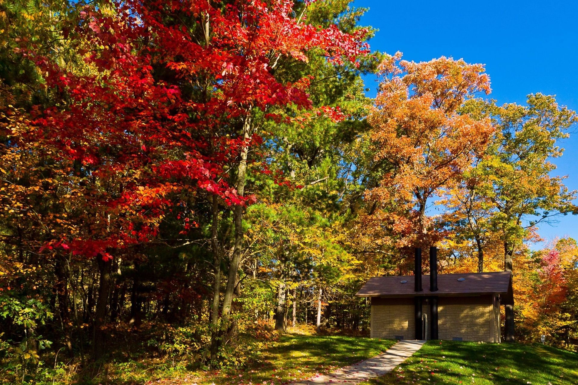 Autumn landscape of trees with yellow and red leavesAutumn landscape of trees with yellow and red leaves