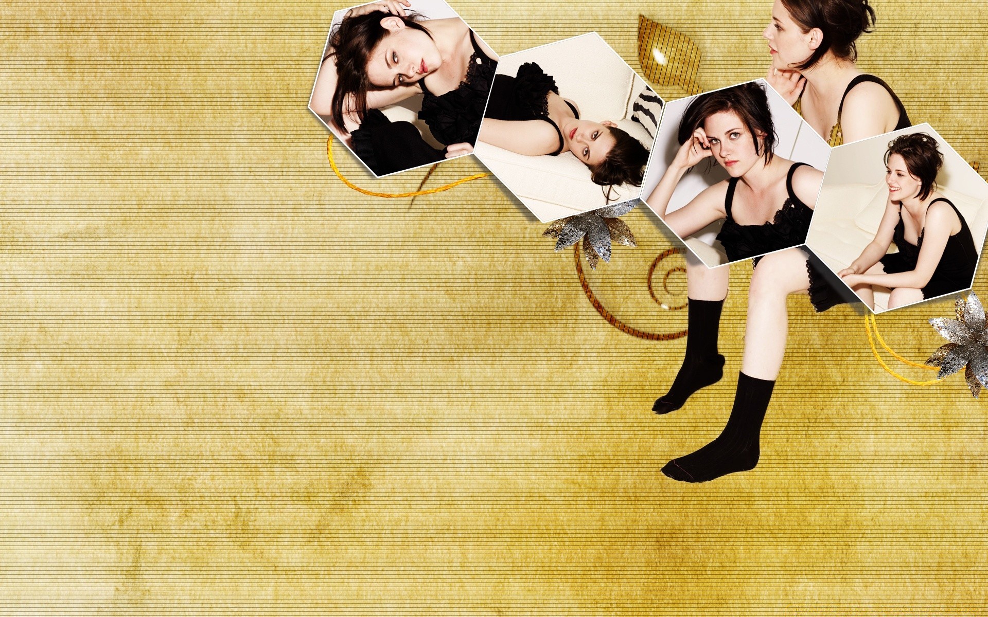 Collage of photos of the actress on a yellow background with the inscriptionCollage of photos of the actress on a yellow background with the inscription