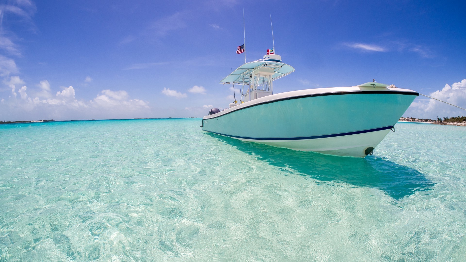 The yacht is going on a cruise on the turquoise oceanThe yacht is going on a cruise on the turquoise ocean